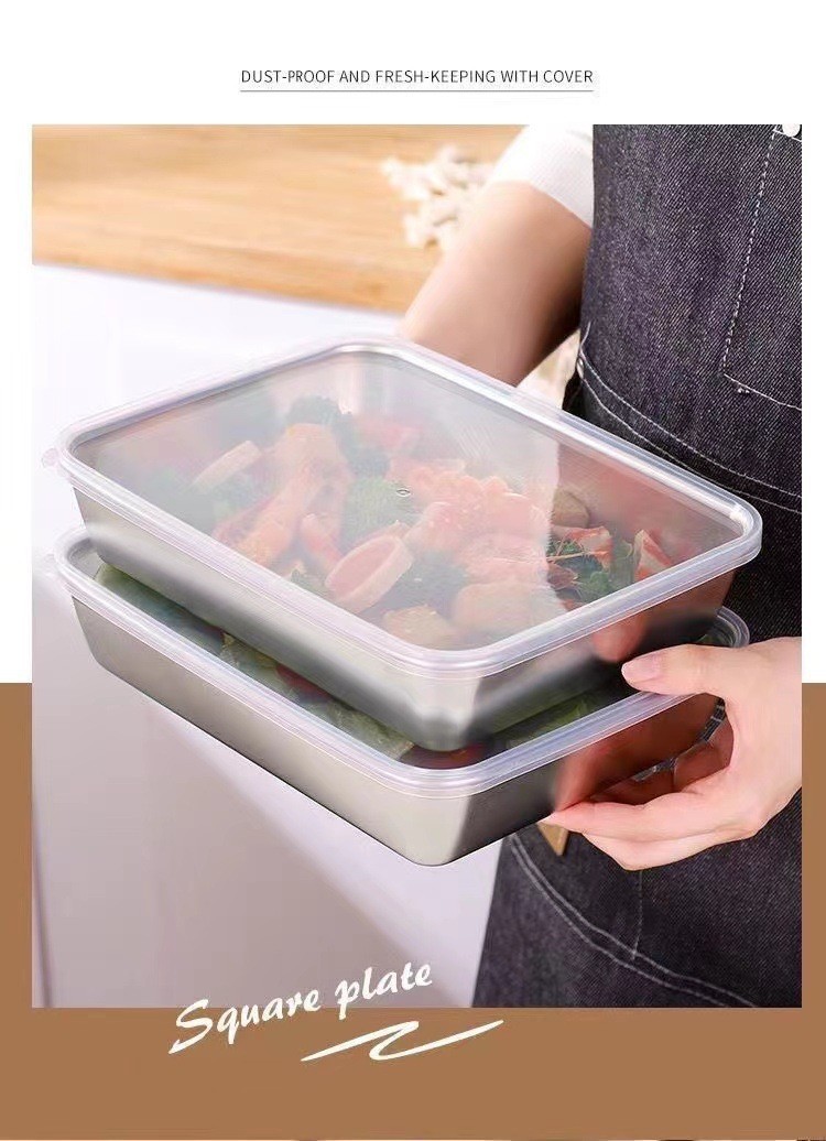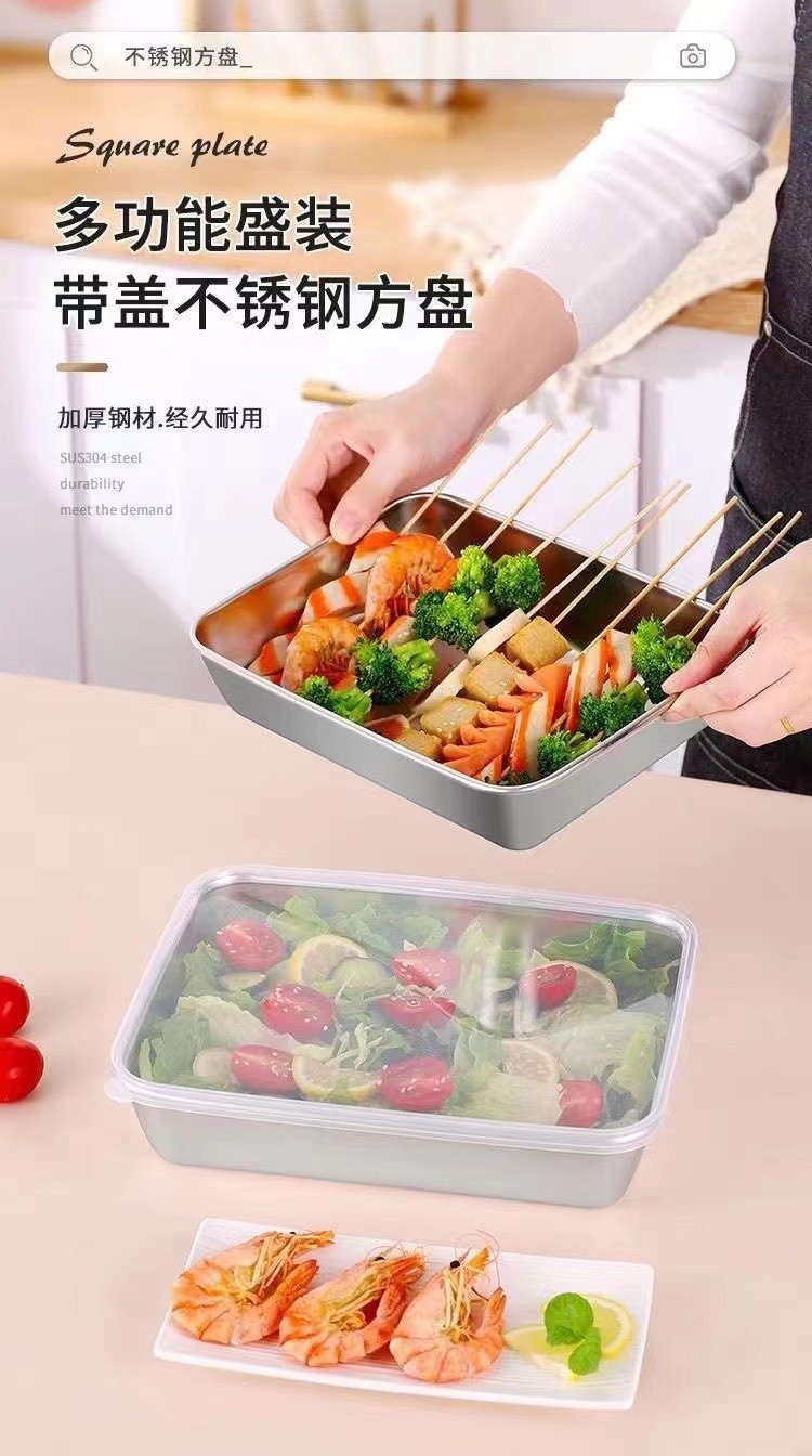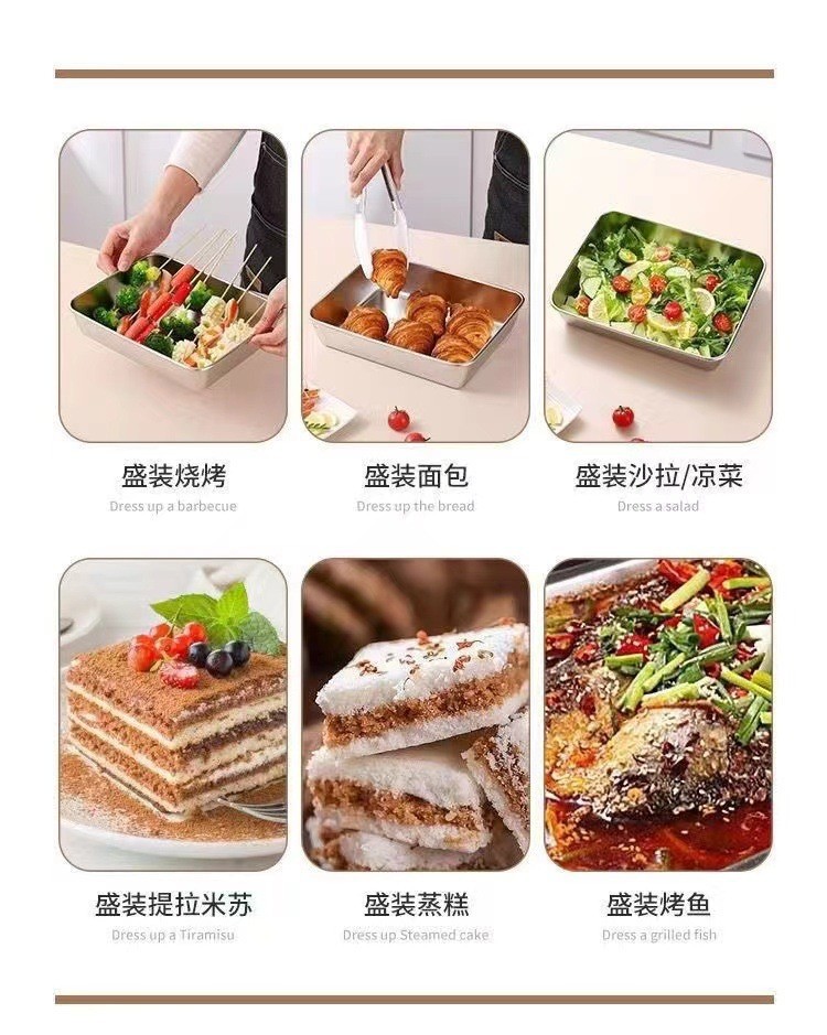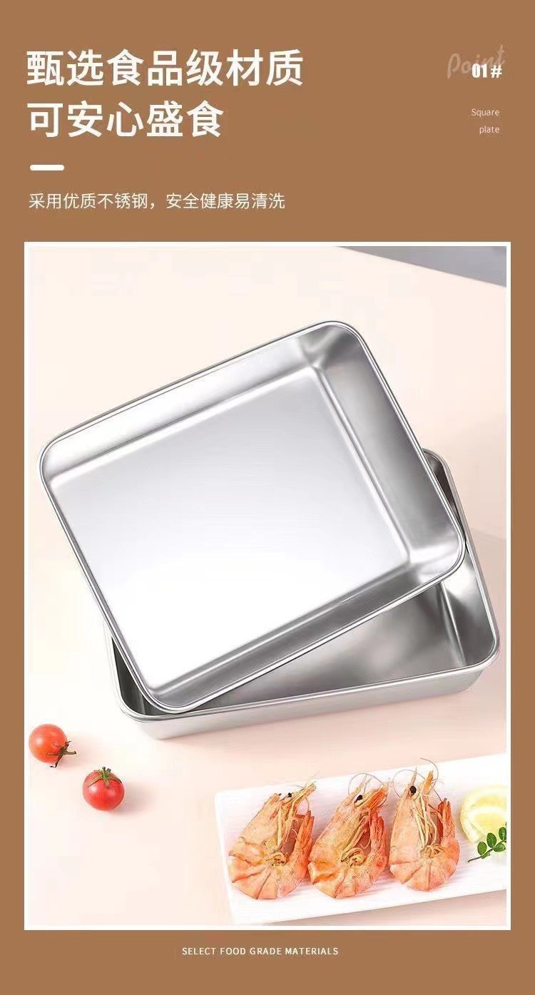 Популярная утолщенная квадратная тарелка из нержавеющей стали для пищевых продуктов, поднос для холодных блюд, тарелка для приготовления на пару, полотенце, многофункциональная тарелка, прямоугольная тарелка для приготовления пищи