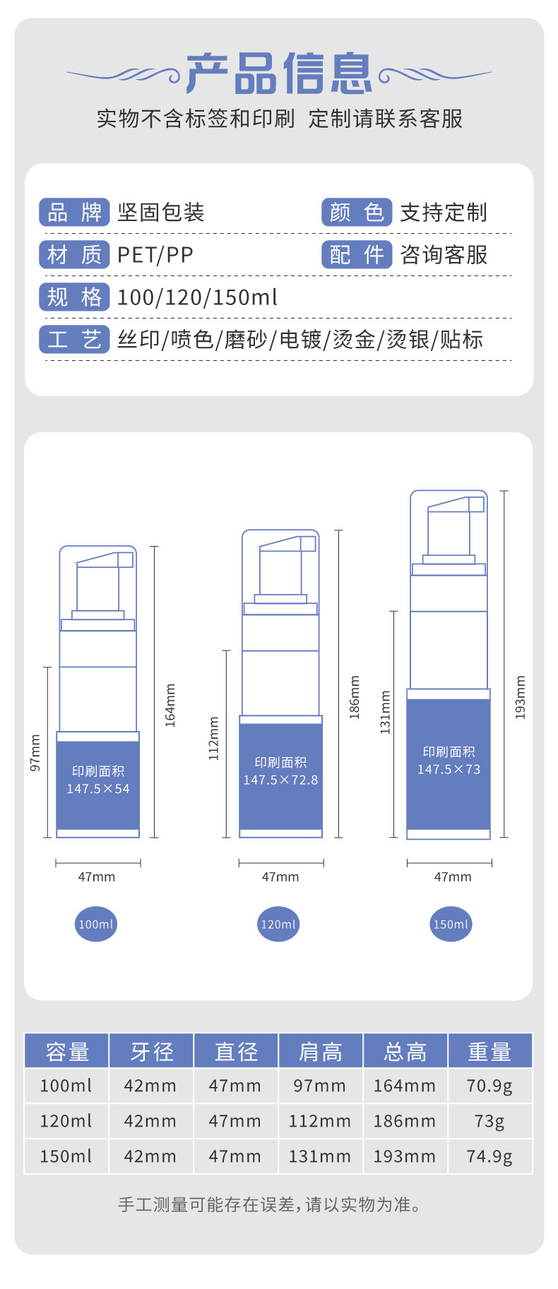100 мл; насос с зажимной головкой; ПЭТ; 100 мл; крышка с дозатором; ПЭТ; 120 мл; насос с зажимной головкой; ПЭТ; 120 мл; крышка с дозатором; ПЭТ; 150 мл; насосная головка с зажимом; ПЭТ; 150 мл; насосная головка с крышкой; ПЭТ
