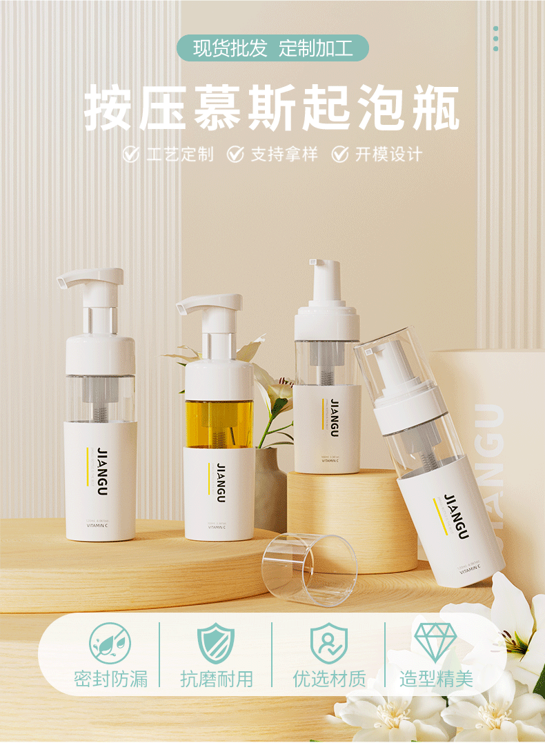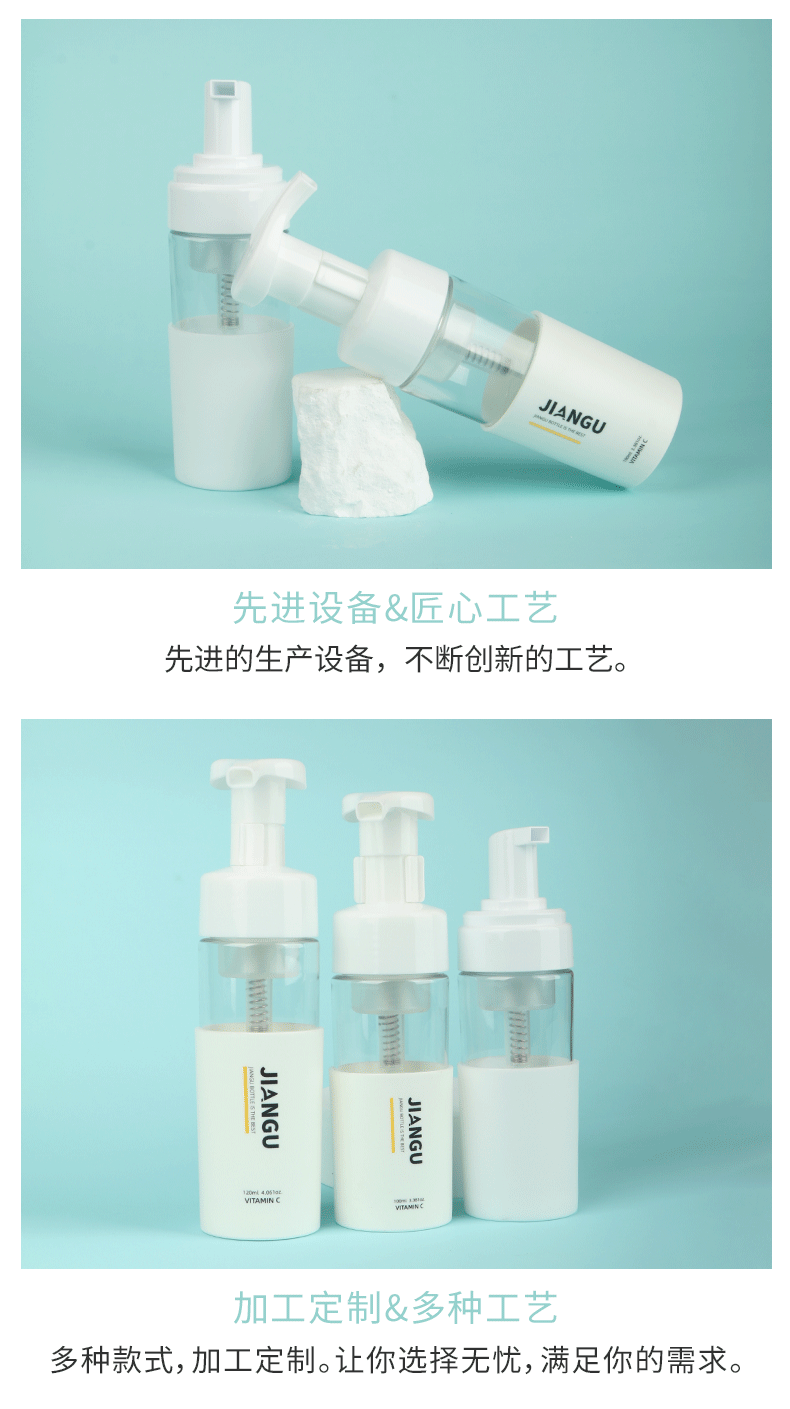 Портативная бутылка для пены для пресса, 100 мл, двухслойная пластиковая бутылка для ухода за домашними животными, соответствующая цвету, бутылка для пены с 42 зубьями