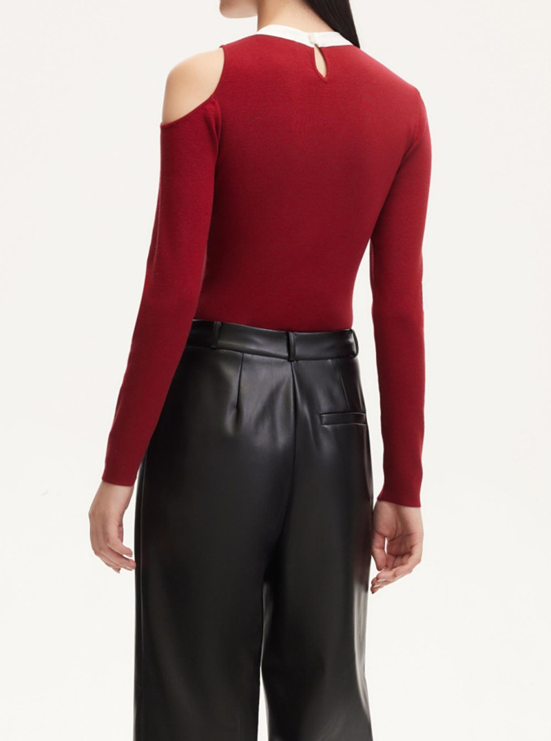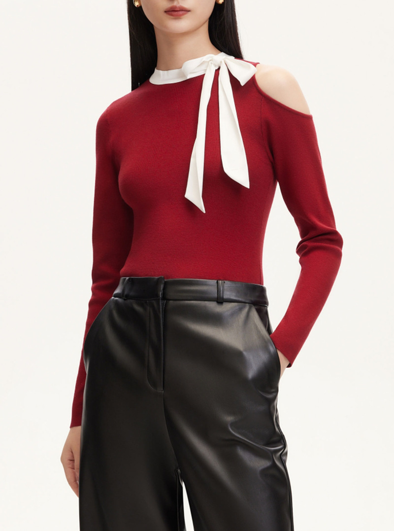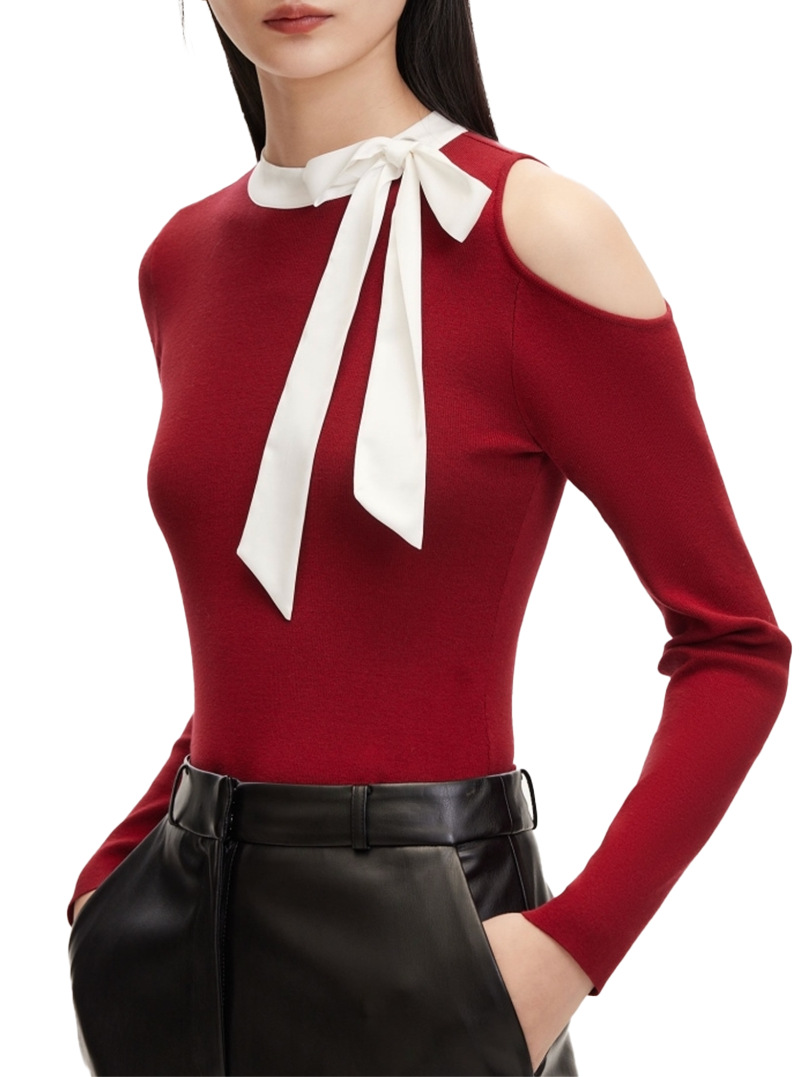 Женский элегантный стиль с полыми плечами, круглым вырезом, съемным бантом, трикотажем Dalang, см. фото, создание узора и индивидуальная настройка.
