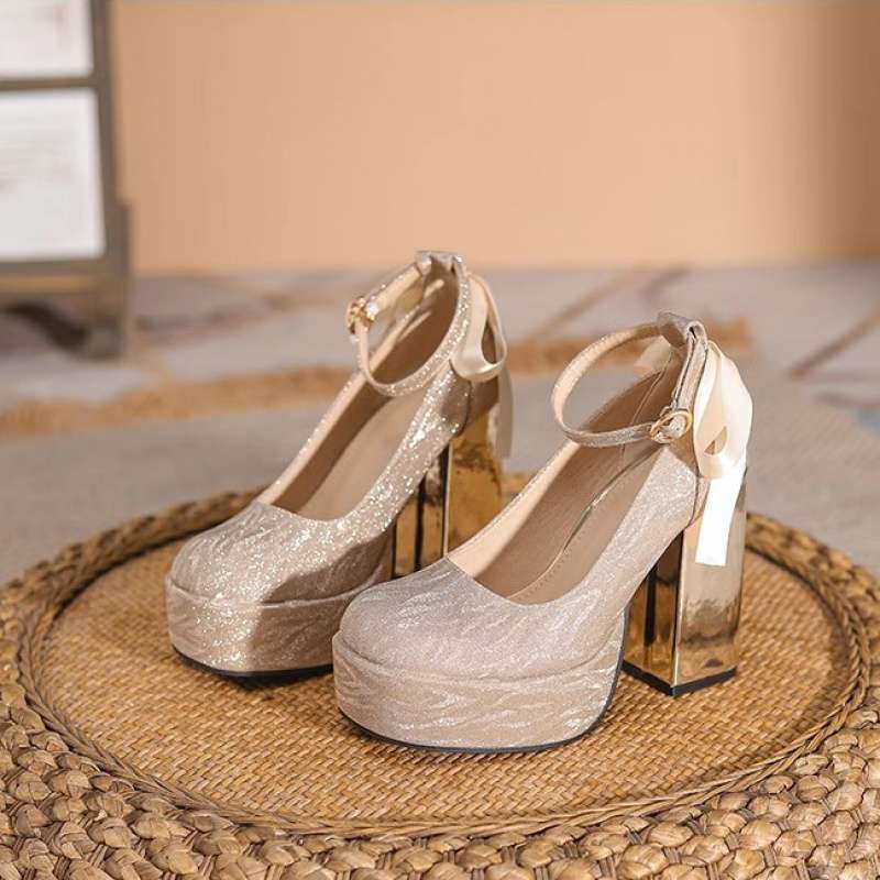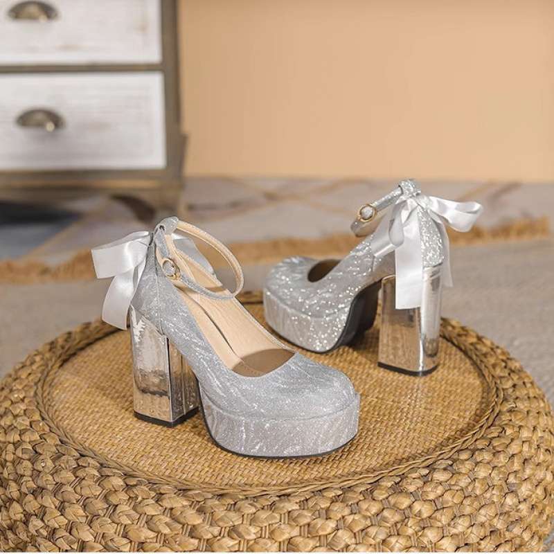 Увеличение роста на 12 см для маленьких людей, серебряные туфли на высоком каблуке, толстые каблуки, свадебные туфли Мэри Джейн во французском стиле, толстая подошва, водонепроницаемые платформы, французские балетки.