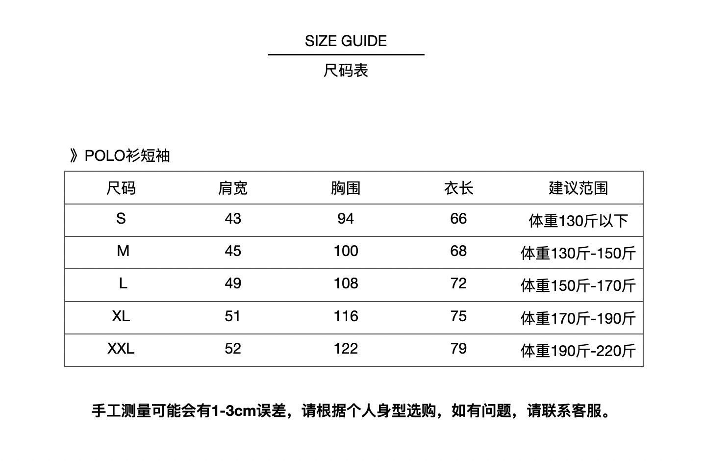 S; M; L; XL; XXL