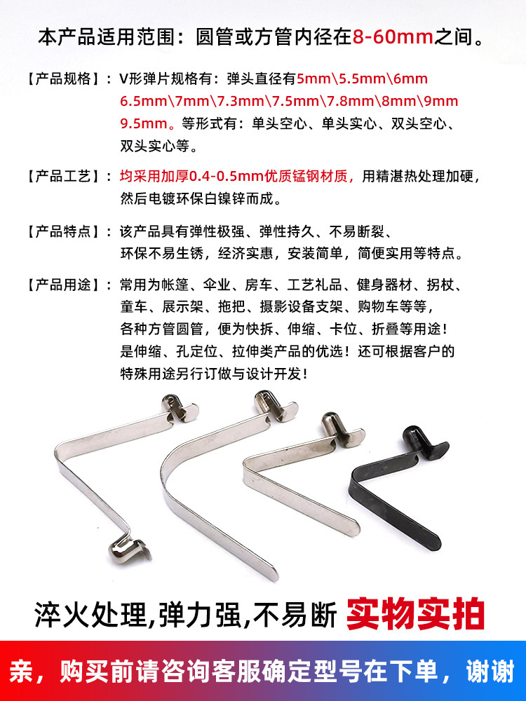 V-образный пружинный зажим, твердая полая одинарная/двусторонняя пряжка, телескопическая трубка, внутренний позиционирующий зажим, пружинная коляска для палатки
