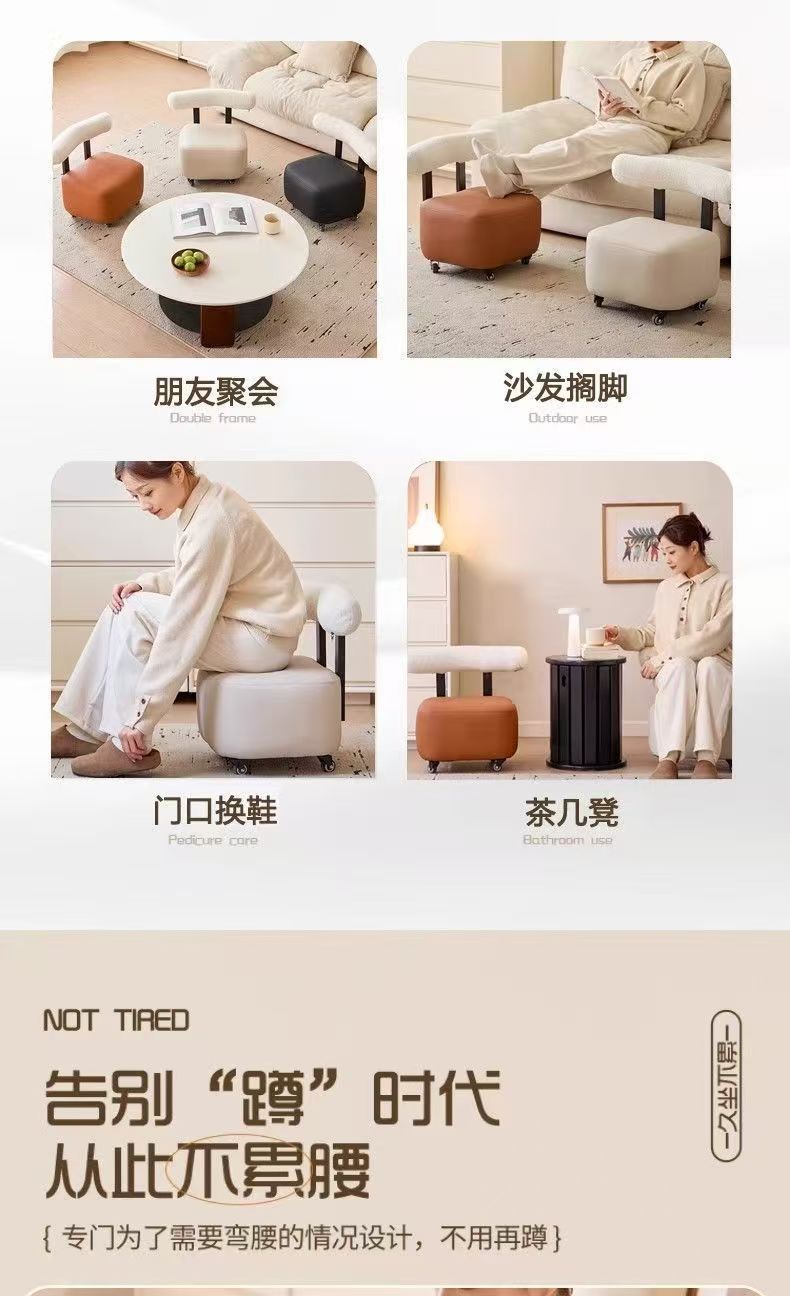 Передвижная скамейка для переобувания для домашнего фойе с универсальными колесами, ленивый диван, модное кресло с откидной спинкой, детский низкий табурет.