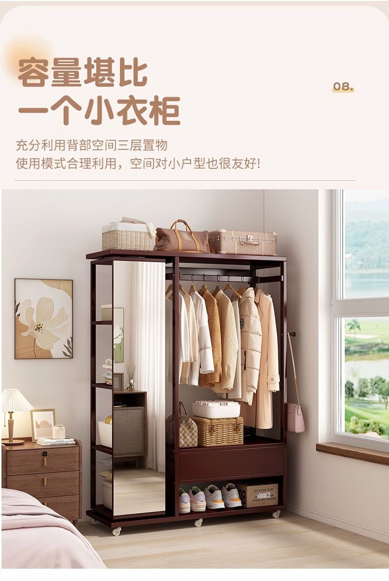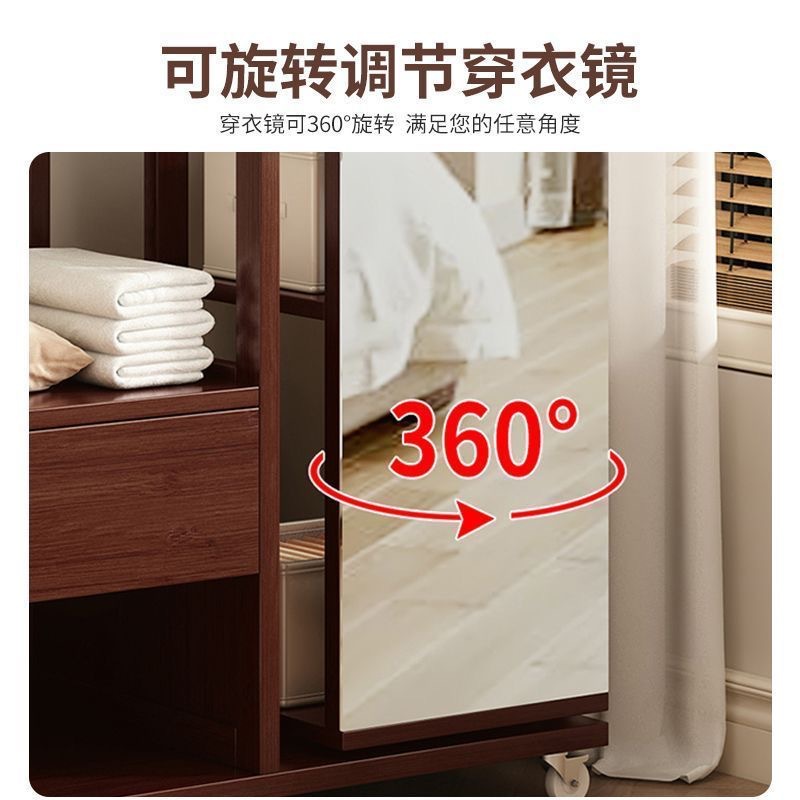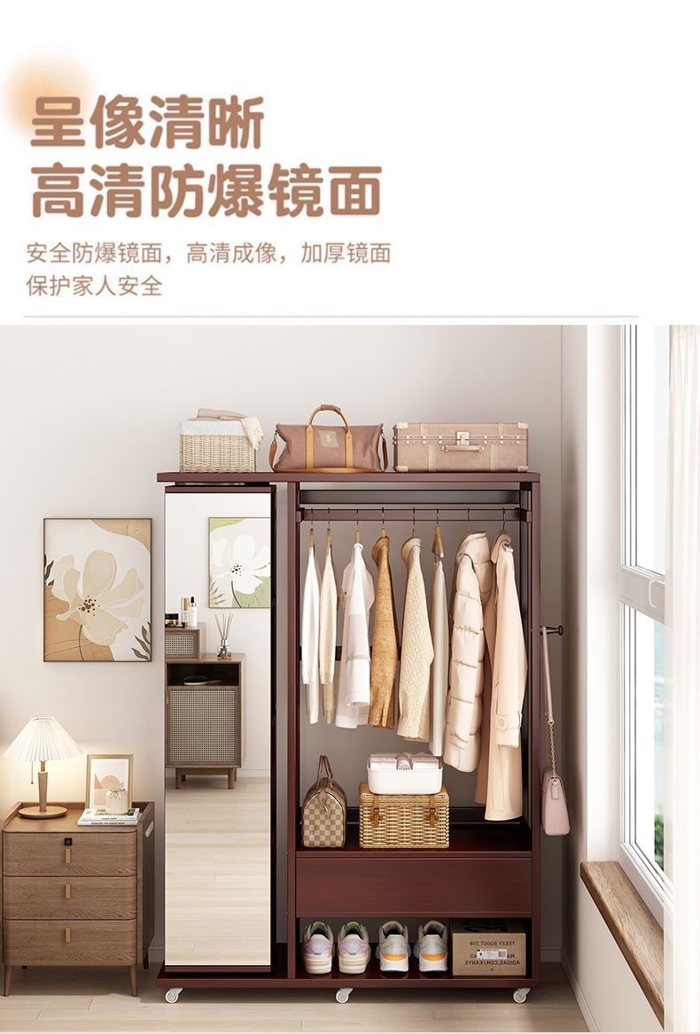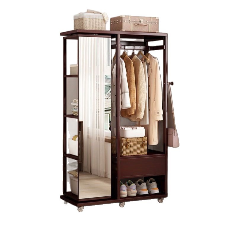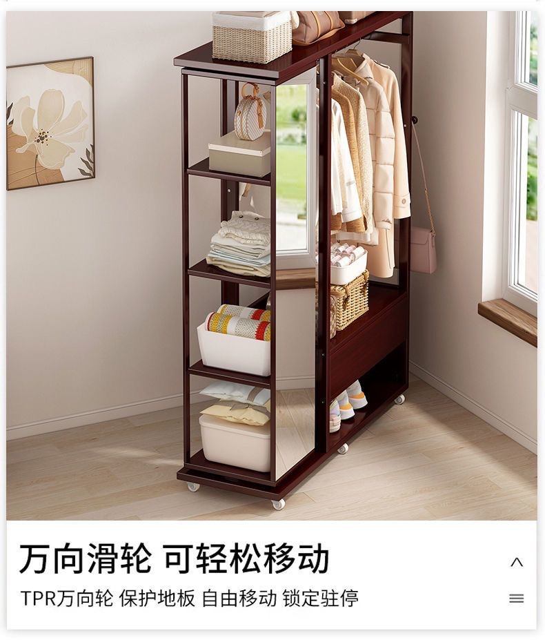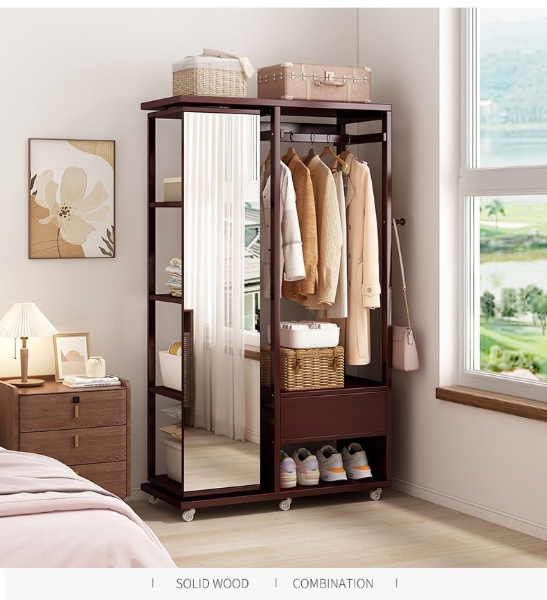 Комбинированная комод-тумба из массива дерева с зеркалом, вешалкой для одежды и выдвижными ящиками, шкаф для хранения вещей на колесиках, многофункциональная.