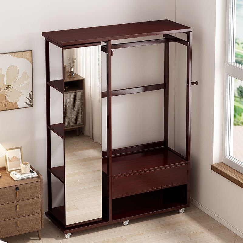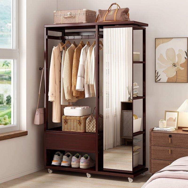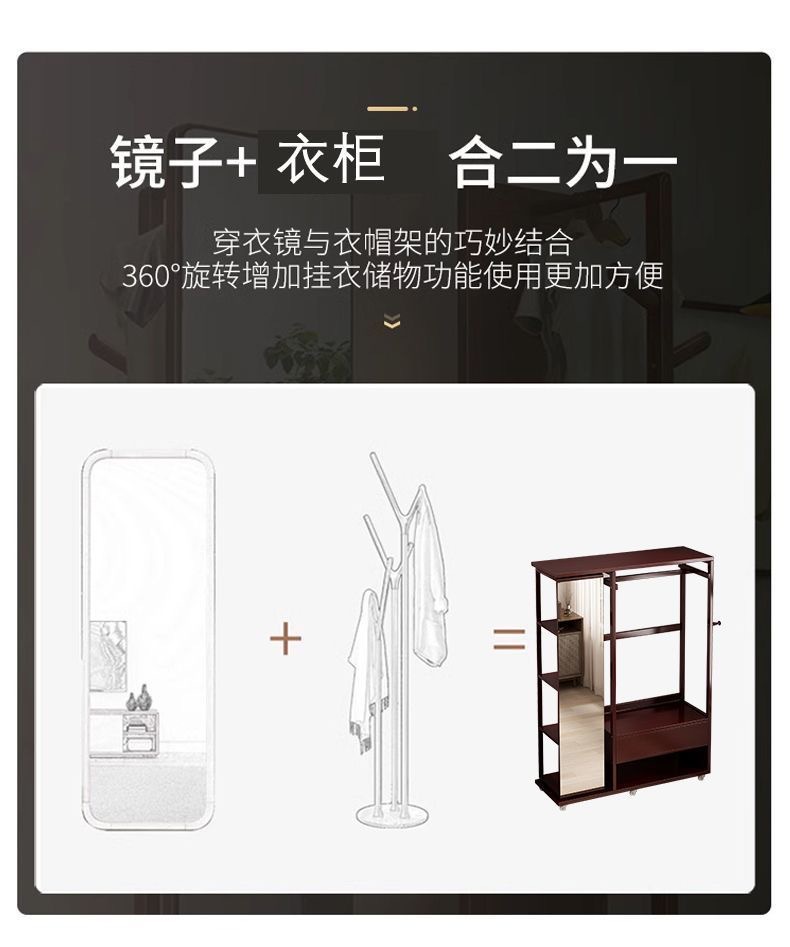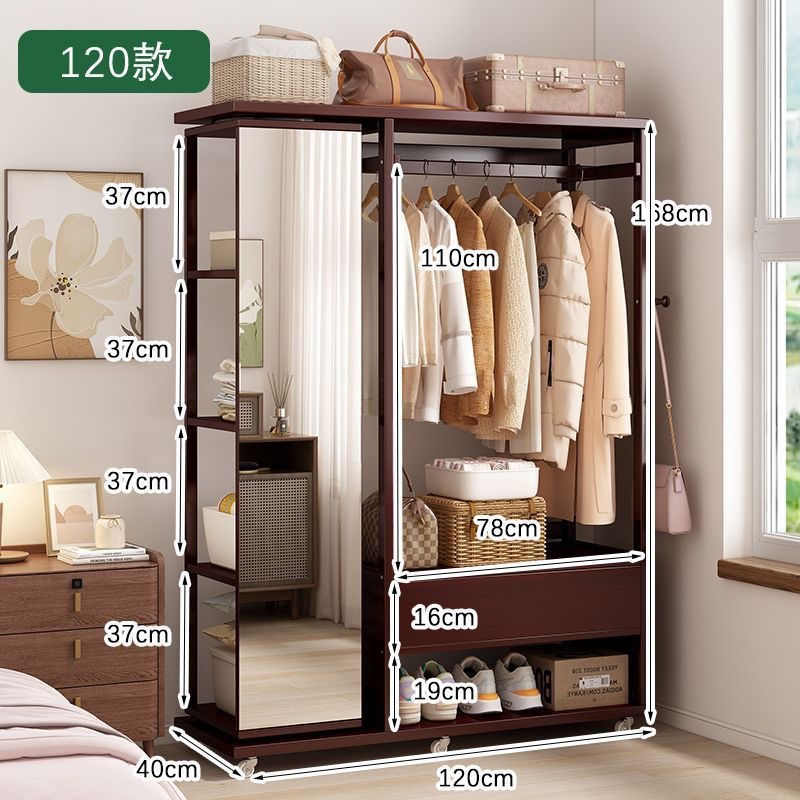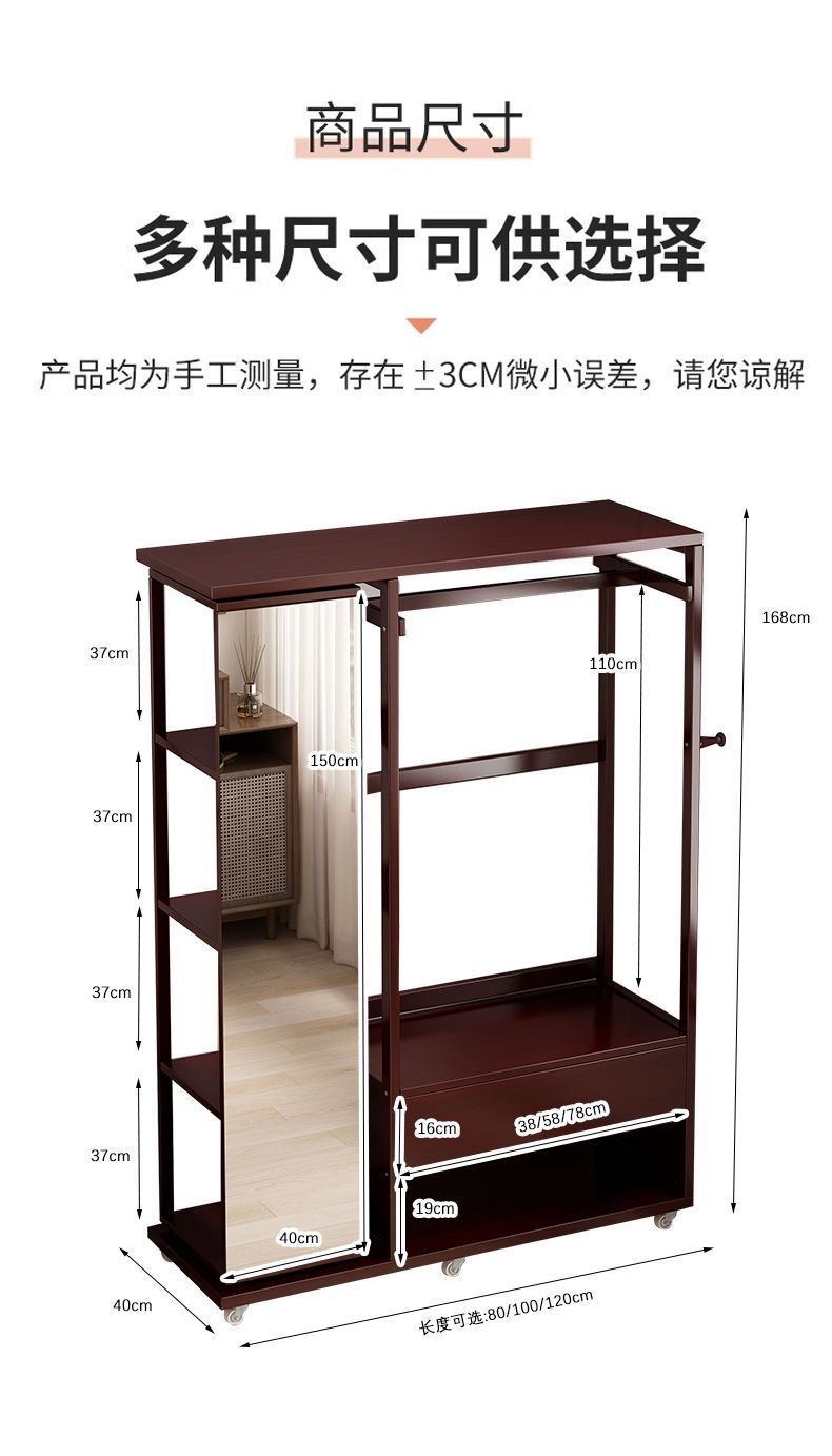 Комбинированная комод-тумба из массива дерева с зеркалом, вешалкой для одежды и выдвижными ящиками, шкаф для хранения вещей на колесиках, многофункциональная.