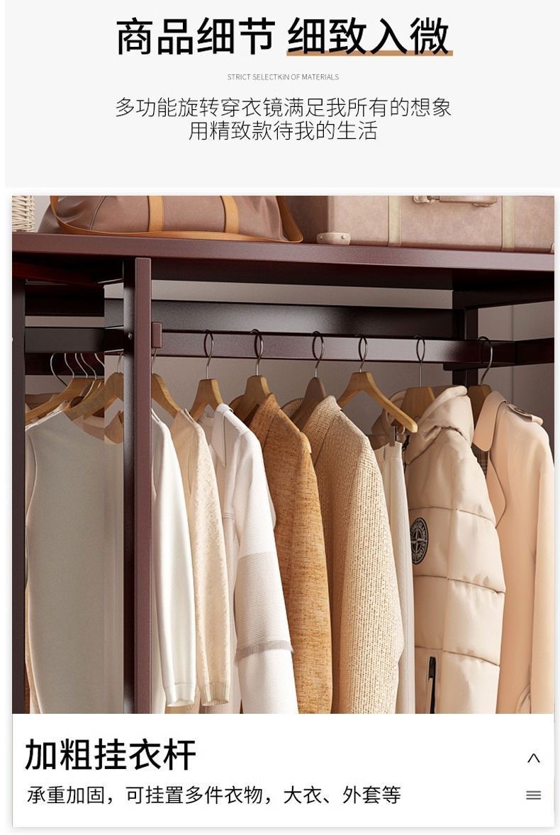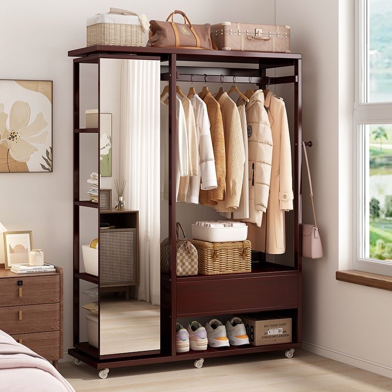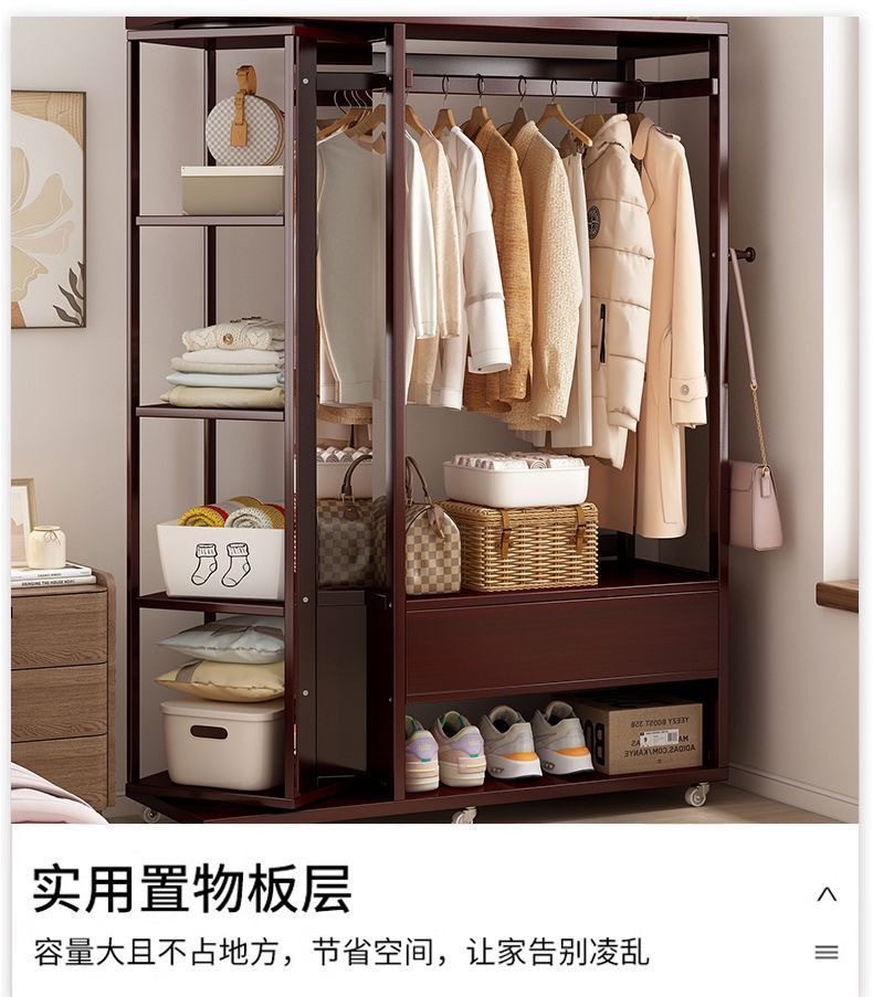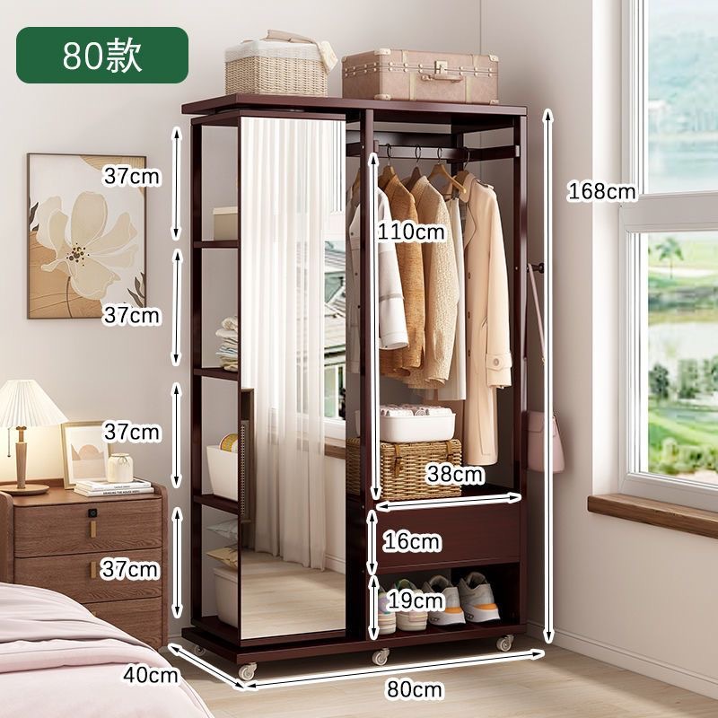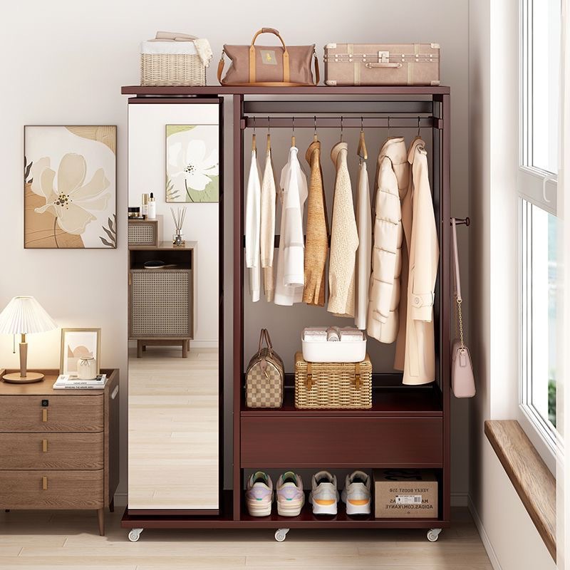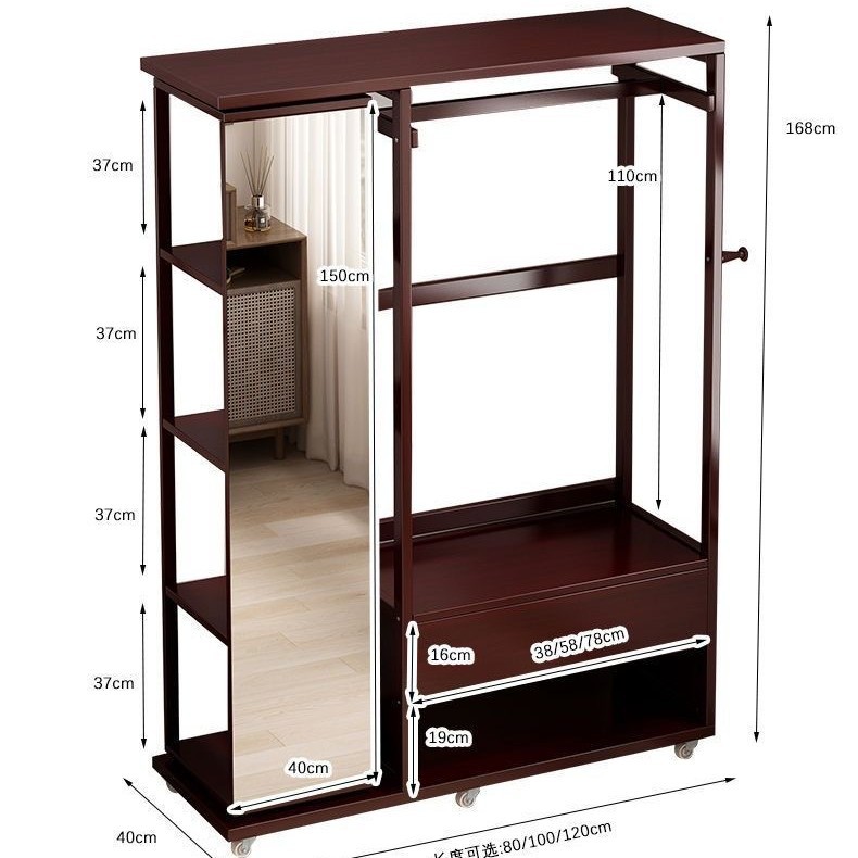 Комбинированная комод-тумба из массива дерева с зеркалом, вешалкой для одежды и выдвижными ящиками, шкаф для хранения вещей на колесиках, многофункциональная.