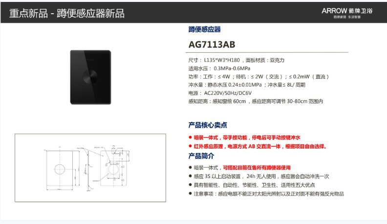 Датчик для унитаза JP Arrow, сенсорный смывной клапан, унитаз для приседаний, полностью автоматический сенсорный унитаз AG7113AB
