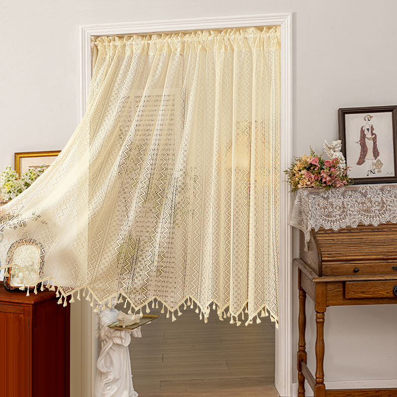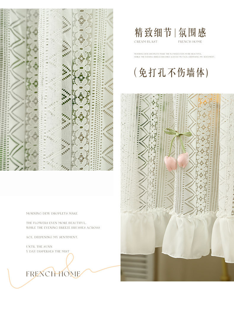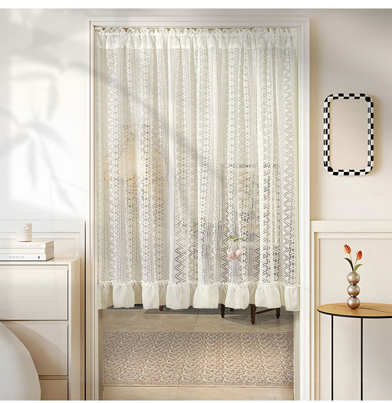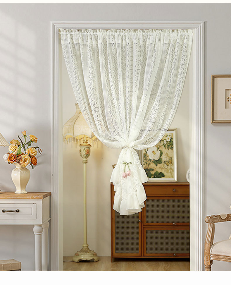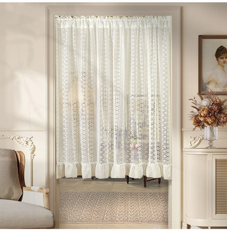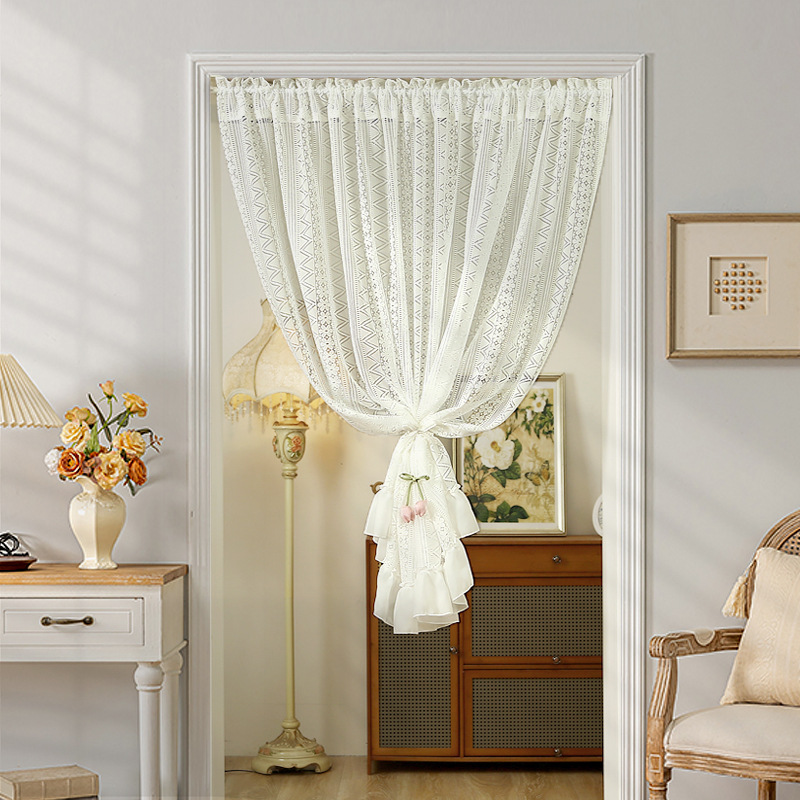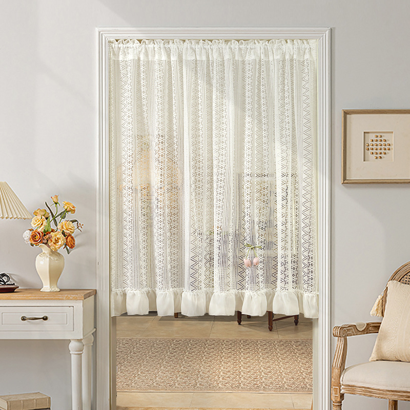 Новая дверная занавеска без перфорации с липучкой, полузанавеска, белая кружевная парусиновая занавеска во французском стиле, занавеска на перегородке, прозрачная занавеска для спальни.