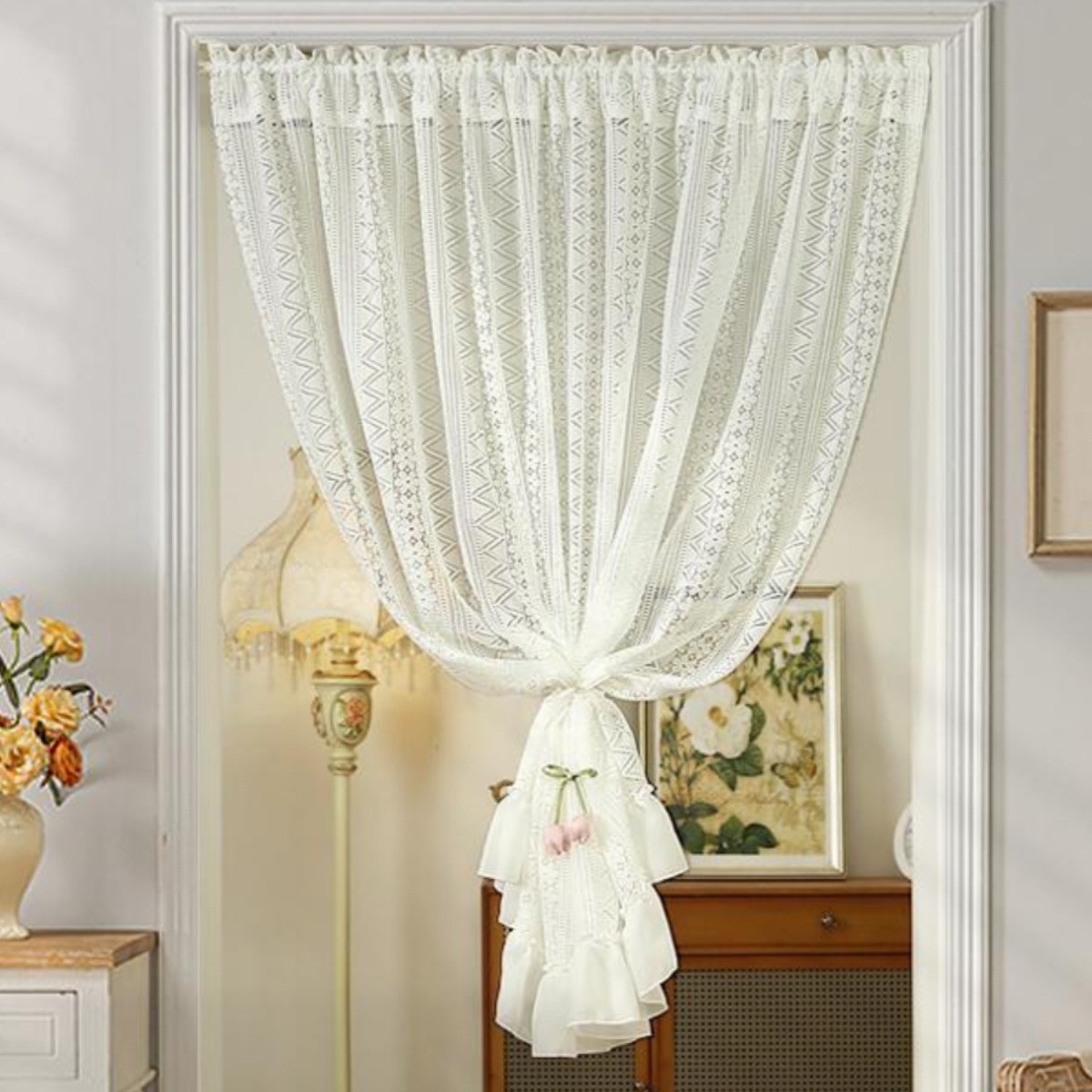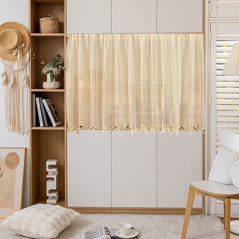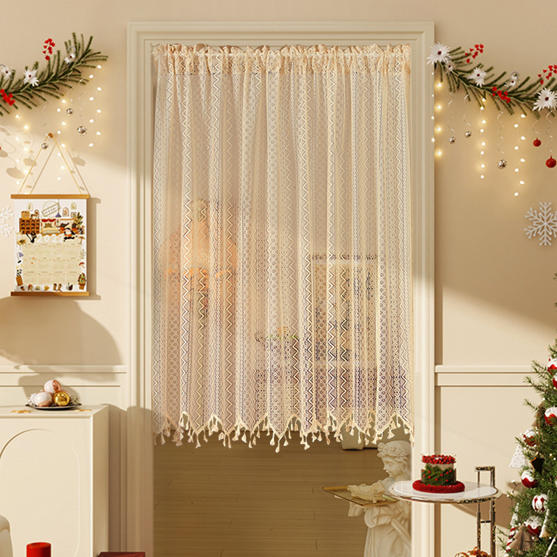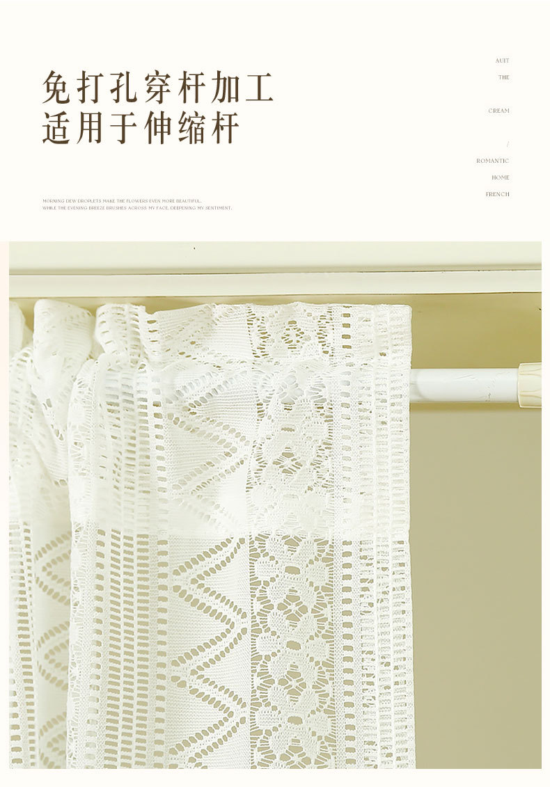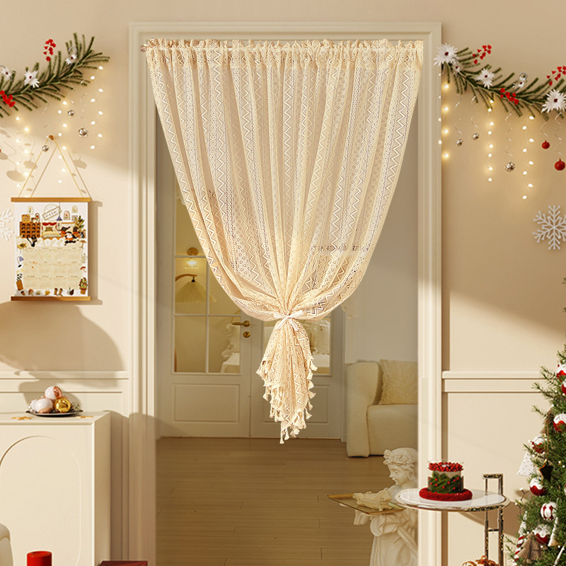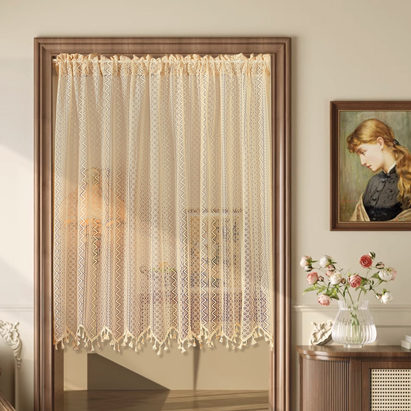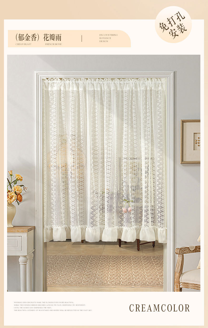 Новая дверная занавеска без перфорации с липучкой, полузанавеска, белая кружевная парусиновая занавеска во французском стиле, занавеска на перегородке, прозрачная занавеска для спальни.