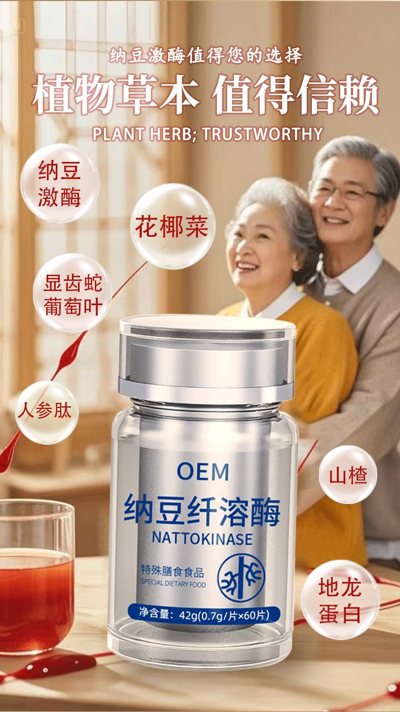Наттокиназа Bacillus subtilis плазмин Специальная диета Таблетки с белком из красного дрожжевого риса Натто Прямой производитель OEM