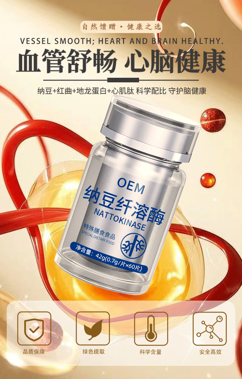 Наттокиназа Bacillus subtilis плазминоген специальная диетическая добавка натто красные дрожжи рисовый протеин таблетки производитель OEM