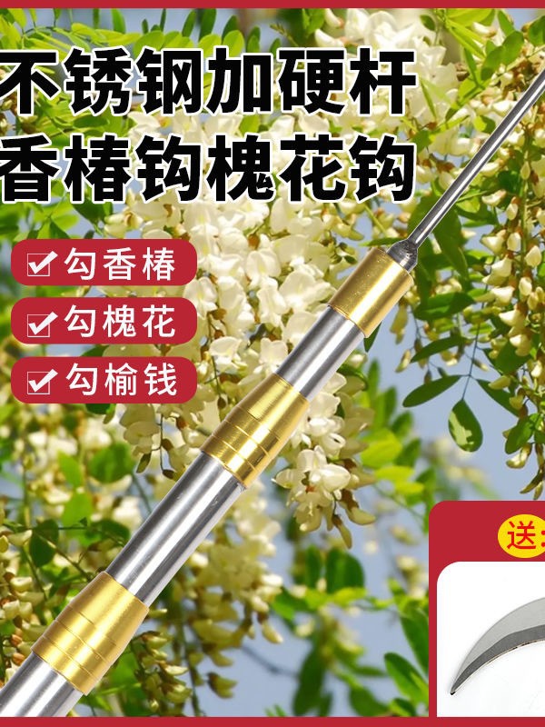 Утолщенная телескопическая штанга из нержавеющей стали для сбора фруктов, включая ароматные весенние цветы, цветы священного дерева, хурму, сливы, яблоки, грецкие орехи и персики.