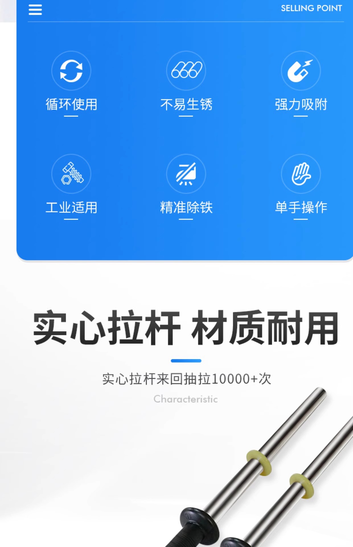 Производитель продает мощные магнитные стержни, стержни с постоянными магнитами, устройства для удаления железа, очистители от железной пыли, инструменты для подбора предметов, а также уплотнители.