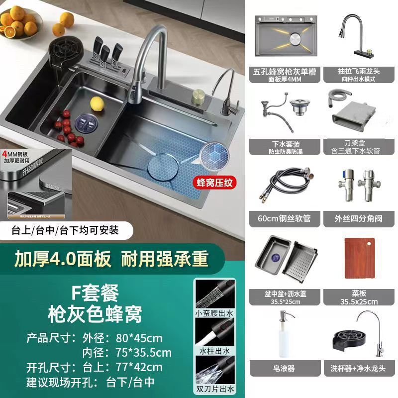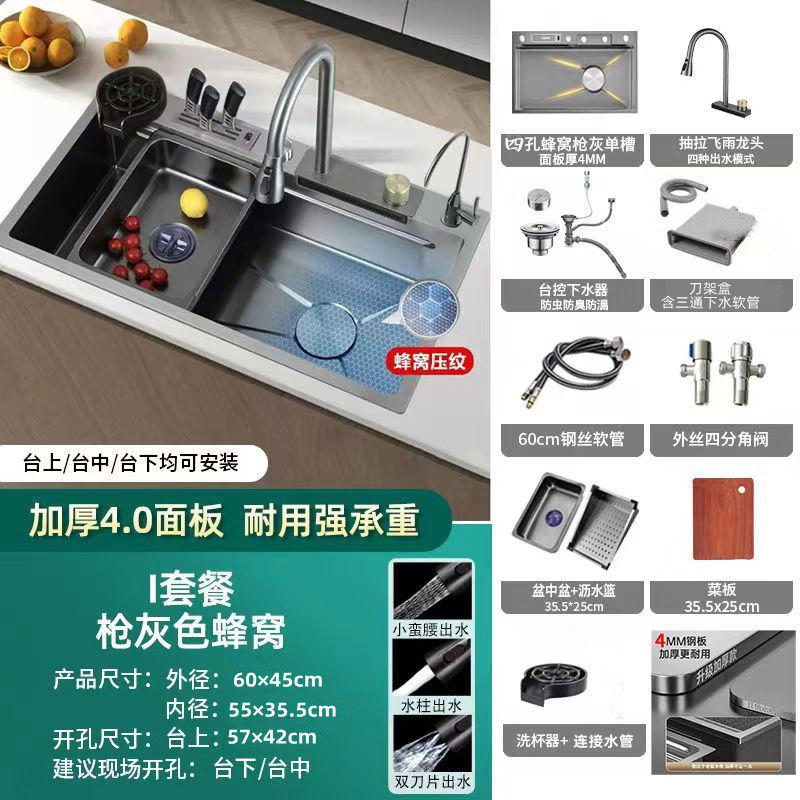 pkp304 утолщенная раковина из нержавеющей стали с тиснением, водопад, нано-соты, ручная работа, кухонный дождевой душ, бытовой, матовый, один