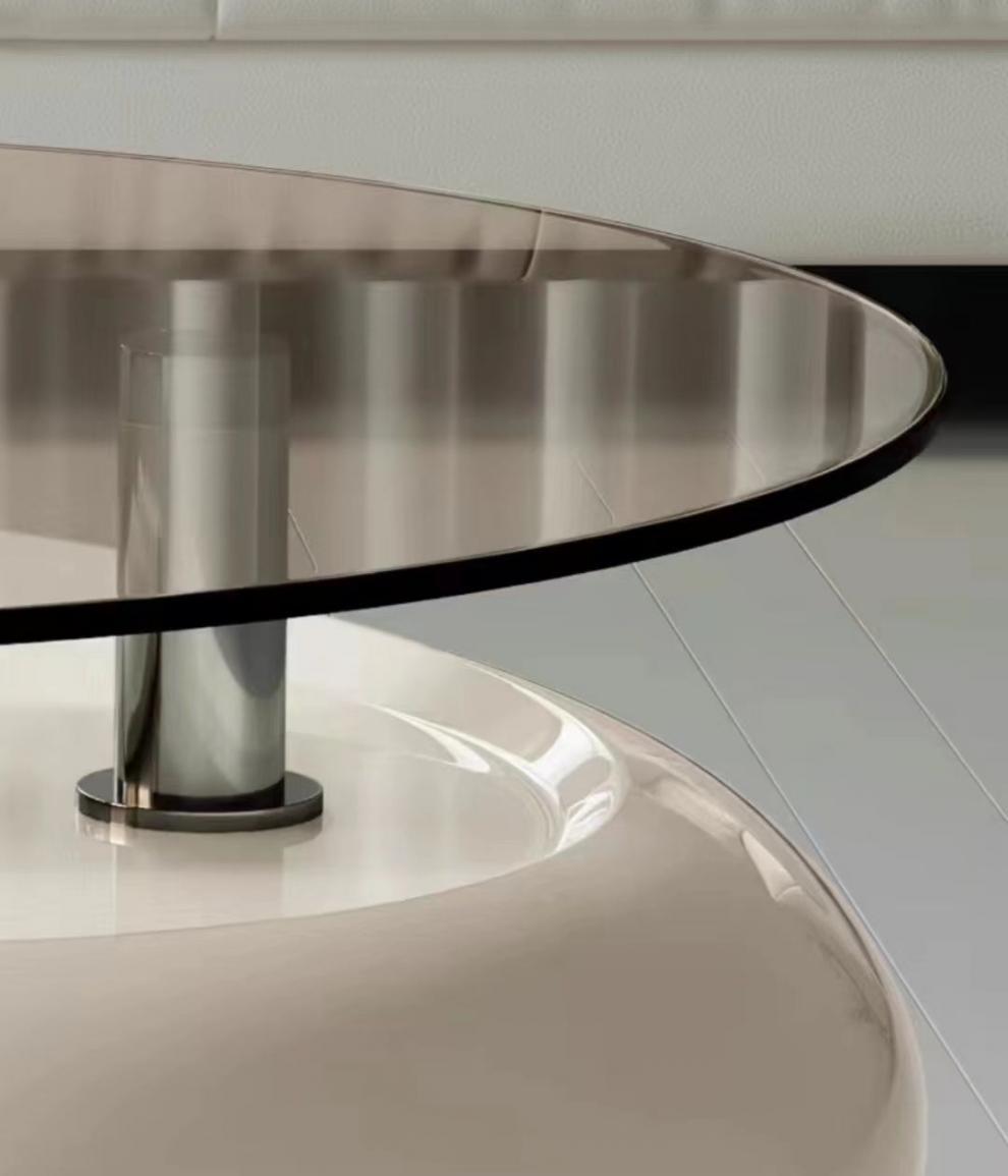 Молочно-белый + коричневый стеклянный журнальный столик с вращением на 360 градусов; Бежевый + коричневый стеклянный вращающийся на 360 градусов качественный журнальный столик; Бежевый + серый стеклянный вращающийся на 360 градусов качественный журнальный столик