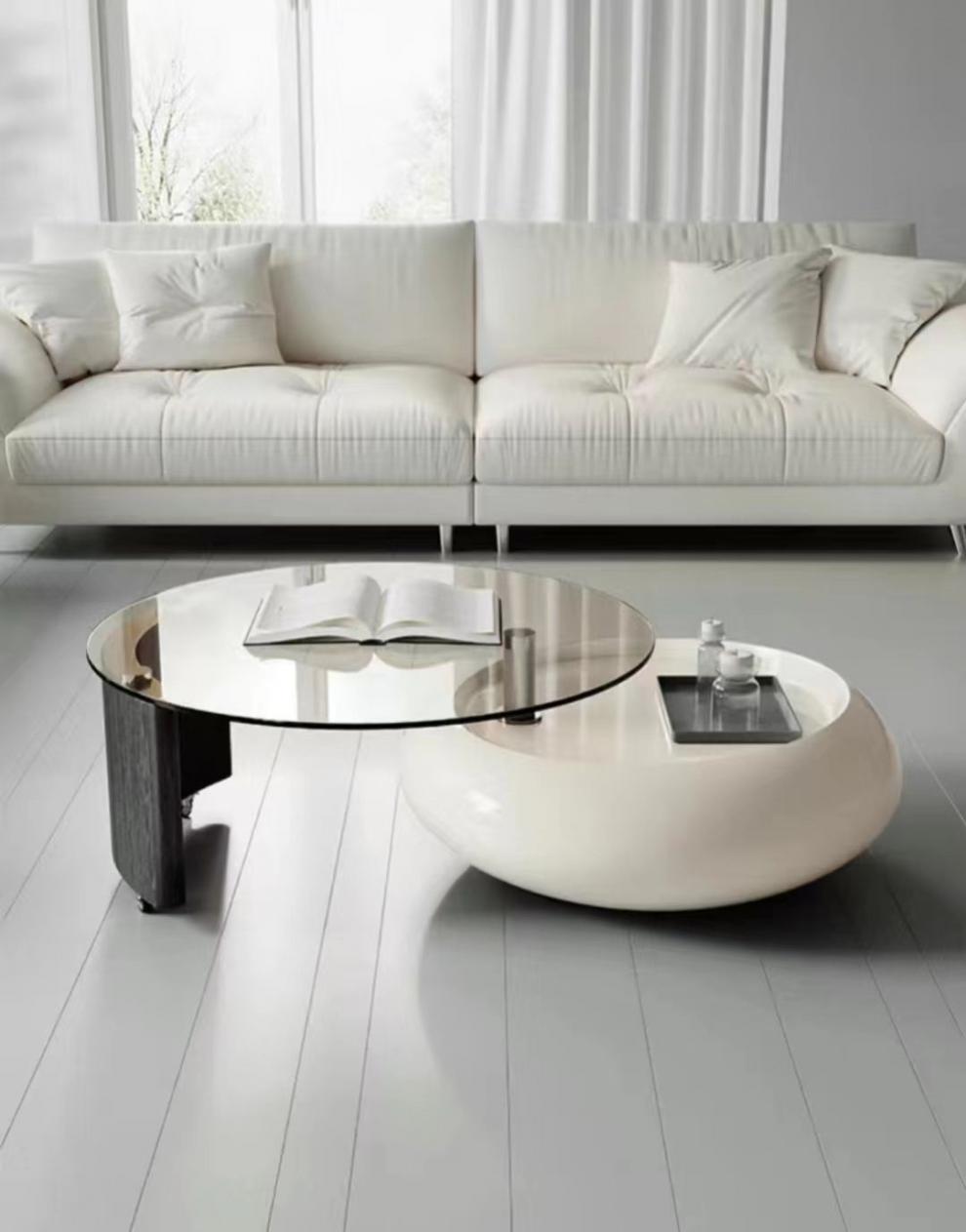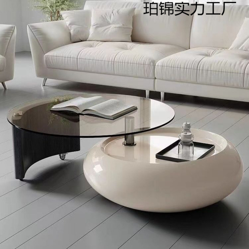 Вращающийся журнальный столик в кремовом стиле, дизайнерский светильник для гостиной в маленькой квартире, роскошный высококачественный круглый журнальный столик из закаленного стекла, комбинация