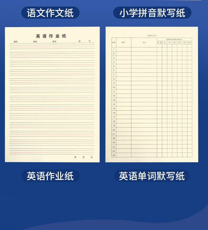 3 [Английские тетради] всего 150 листов; 3 книги [китайская бумага для композиции] всего 150 листов; 3 книги [Диктовка Пиньинь для начальной школы] всего 150 листов; 3 книги [Запоминание английских слов] всего 150 листов; 6 [Английские тетради] всего 300 листов; 6 штук [Китайская композиционная бумага] всего 300 листов; 6 штук [Бумага для диктовки Пиньинь для начальной школы] всего 300 листов; 6 книг [Запоминание английских слов] всего 300 листов; 9 [Английские тетради] всего 450 листов; 9 [Китайские сочинения] всего 450 листов; 9 штук [Бумага для диктовки Пиньинь для начальной школы] всего 450 листов; 9 книг [Запоминание английских слов] всего 450 листов; 1 [Рабочая бумага по английскому языку] всего 150 листов; 1 [Китайская композиционная бумага] всего 150 листов; 1 книга [Диктант Пиньинь для начальной школы] всего 150 листов