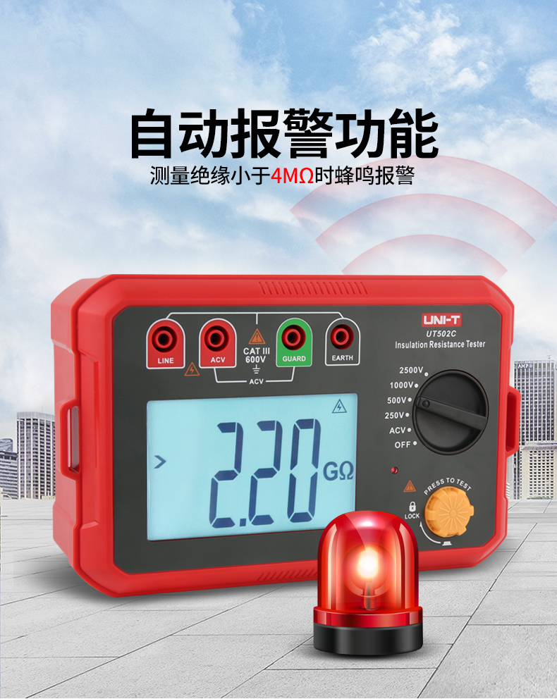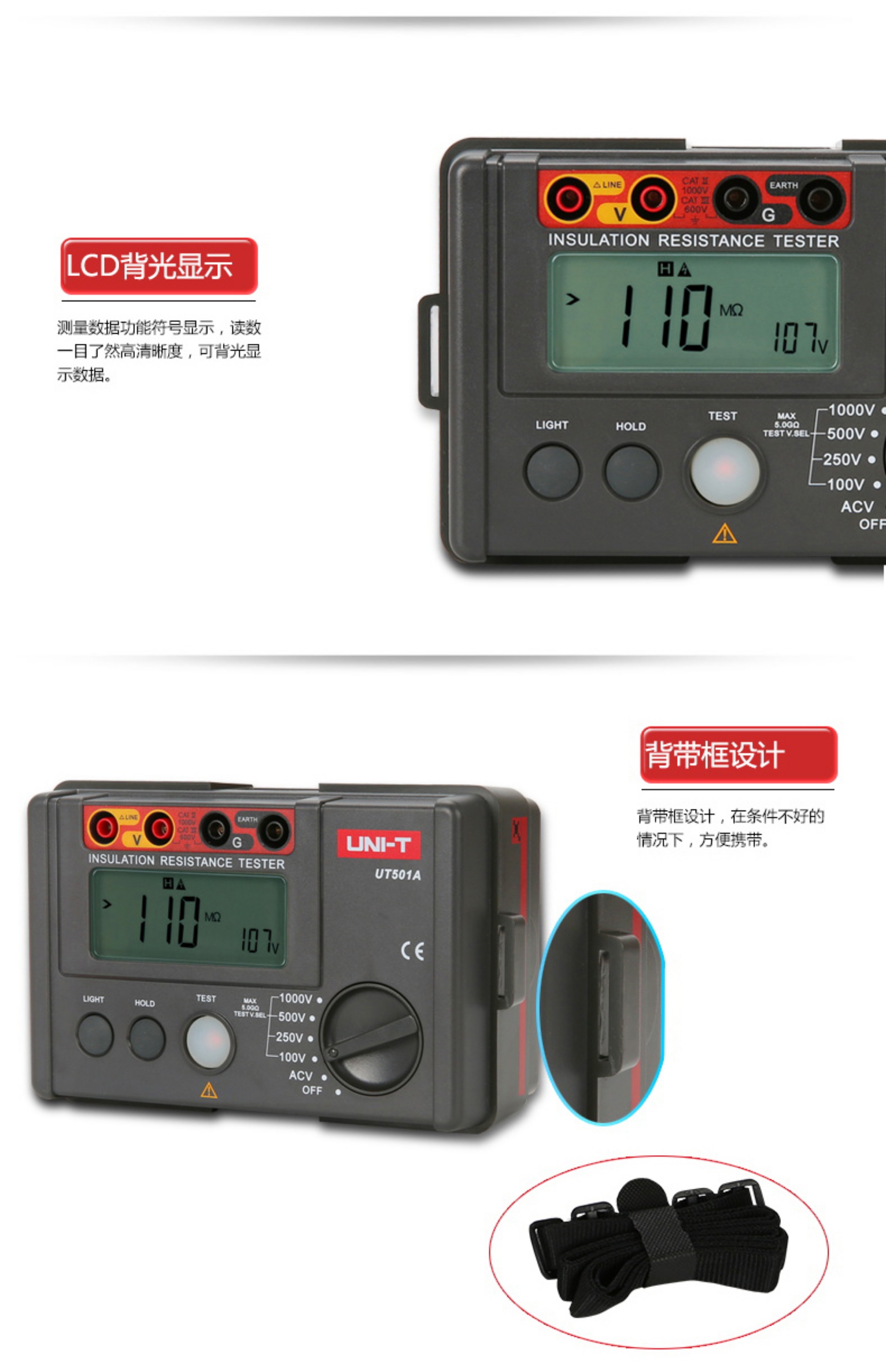 UT501A Тестер сопротивления изоляции Высокоточный измеритель сопротивления изоляции электрика 1000 В Цифровой мегаомметр 500 В