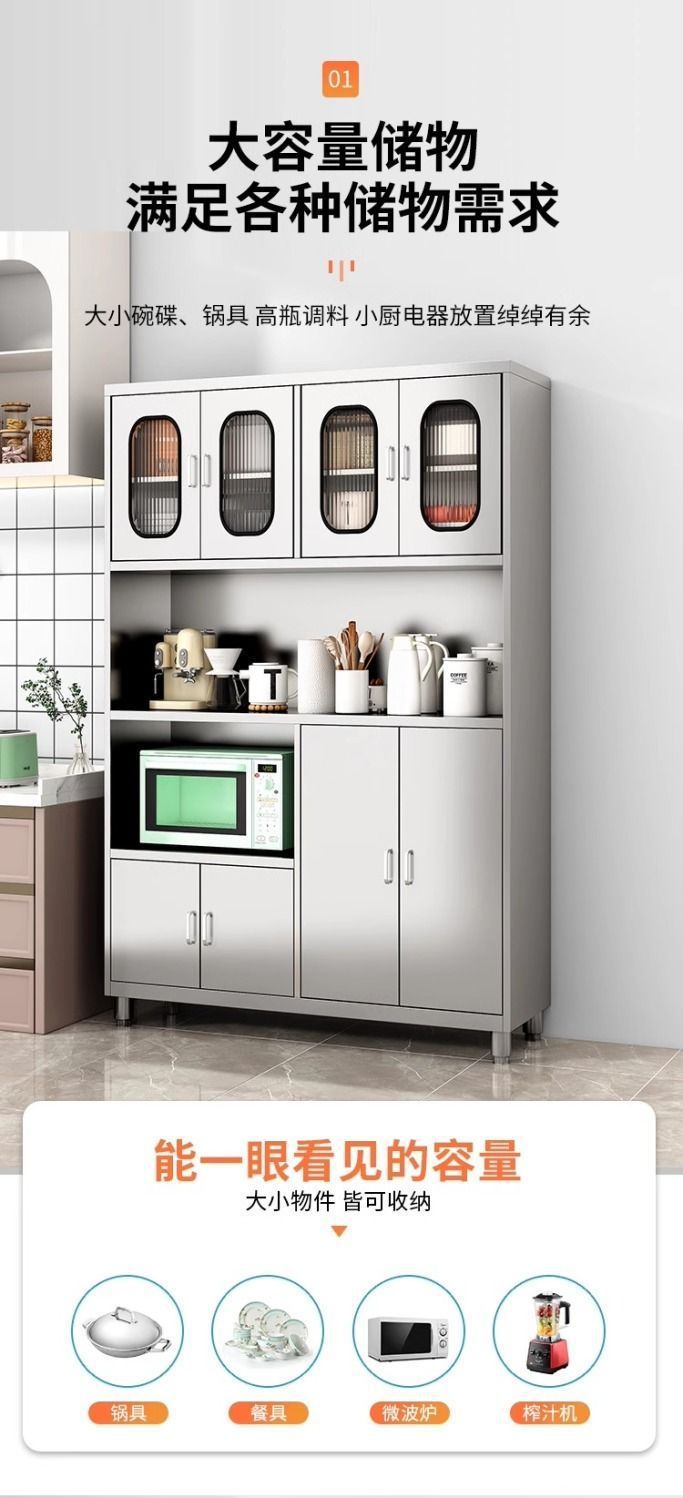 Кухонный шкаф-буфет из нержавеющей стали 304 с выдвижным ящиком, для микроволновой печи, металлический