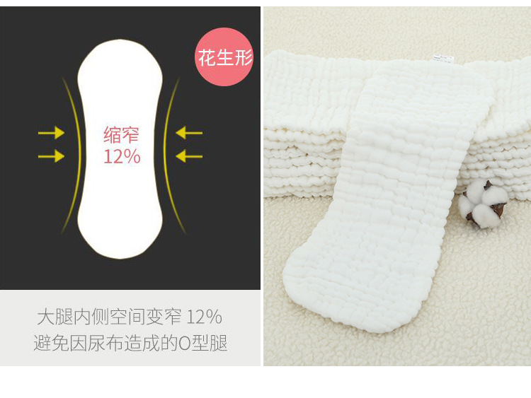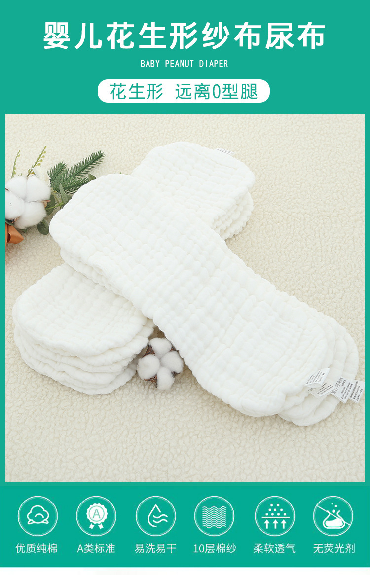 Подгузники для младенцев и детей младшего возраста, класс А, хлопчатобумажная марля, моющиеся подгузники для новорожденных, 10-слойные подгузники из ткани в форме арахиса для малышей.