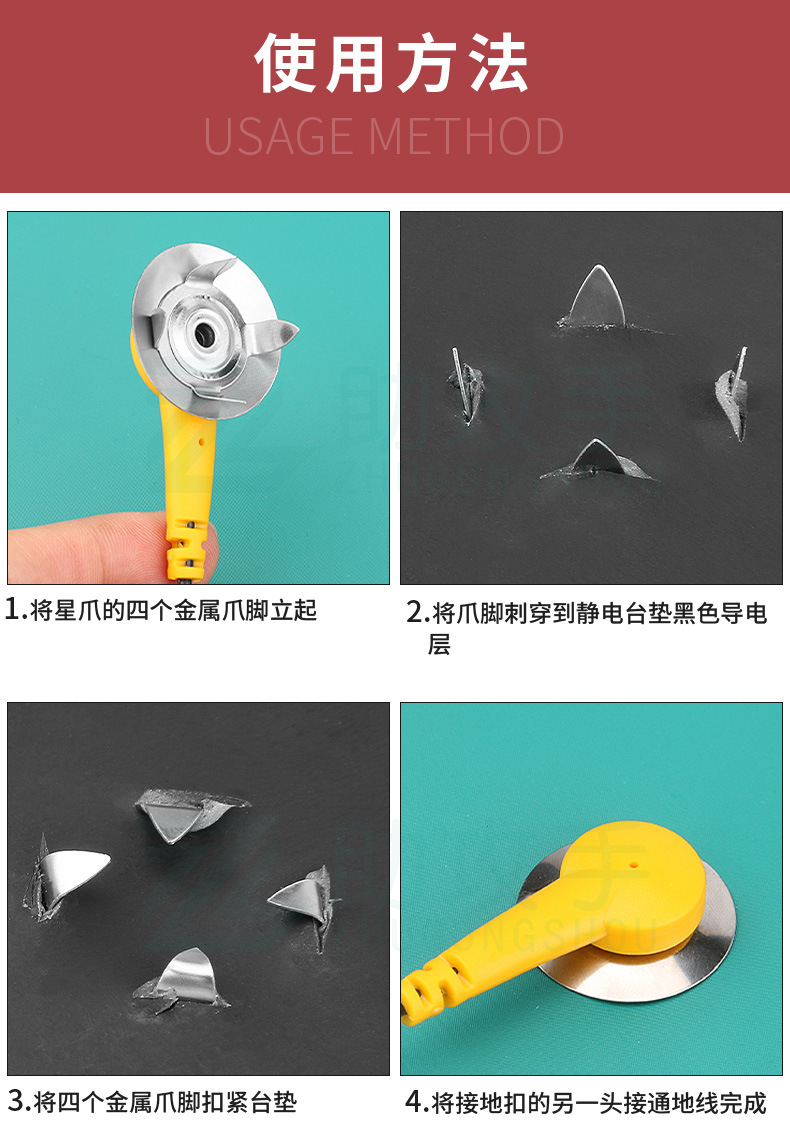 Антистатический зажим для подключения к заземлению настольного коврика, 1.8m устройства для подключения к заземлению, электростатический резиновый зажим в форме звезды, зажим типа «крокодил», ПУ, присоска, заземляющий провод