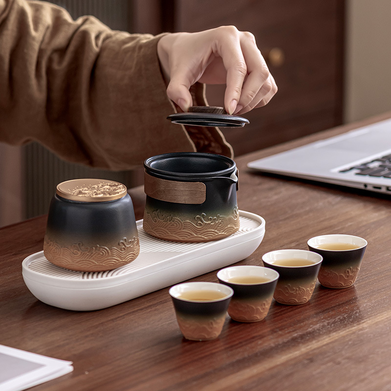 Портативный чайный набор для путешествий, кунг-фу чайный набор для отдыха на природе, быстрая чашка, подарок для компании, бизнеса, с нанесенным логотипом