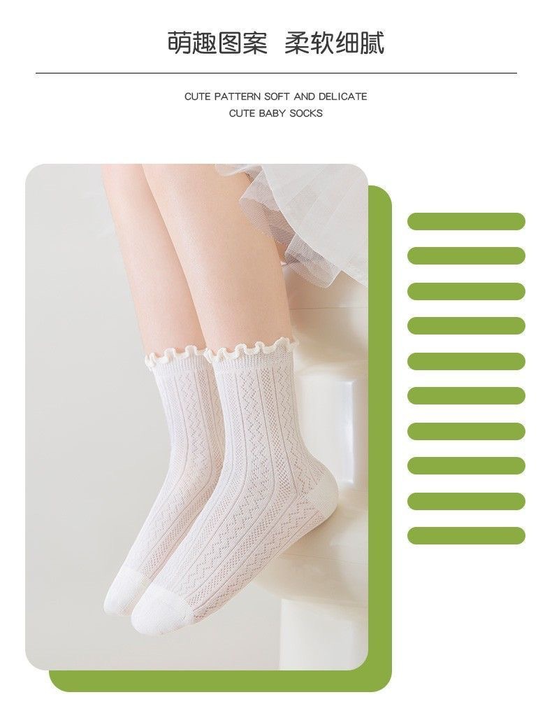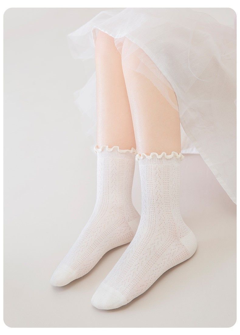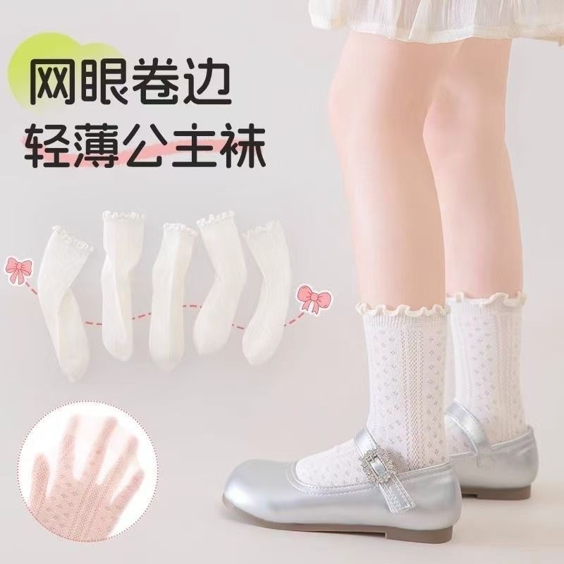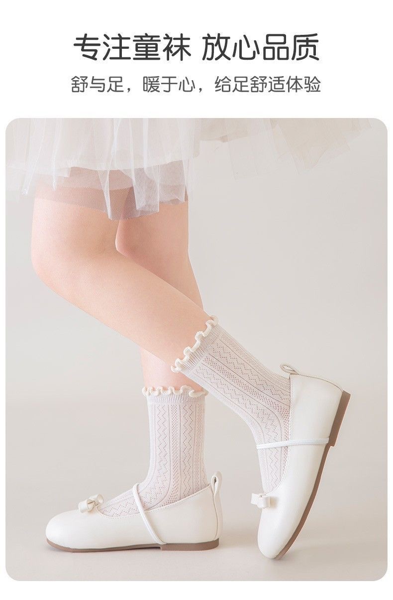 [Легкие и не растягивающиеся] белые носки для девочек, летние тонкие белые носки, дышащие сетчатые кружевные носки принцессы для маленьких девочек