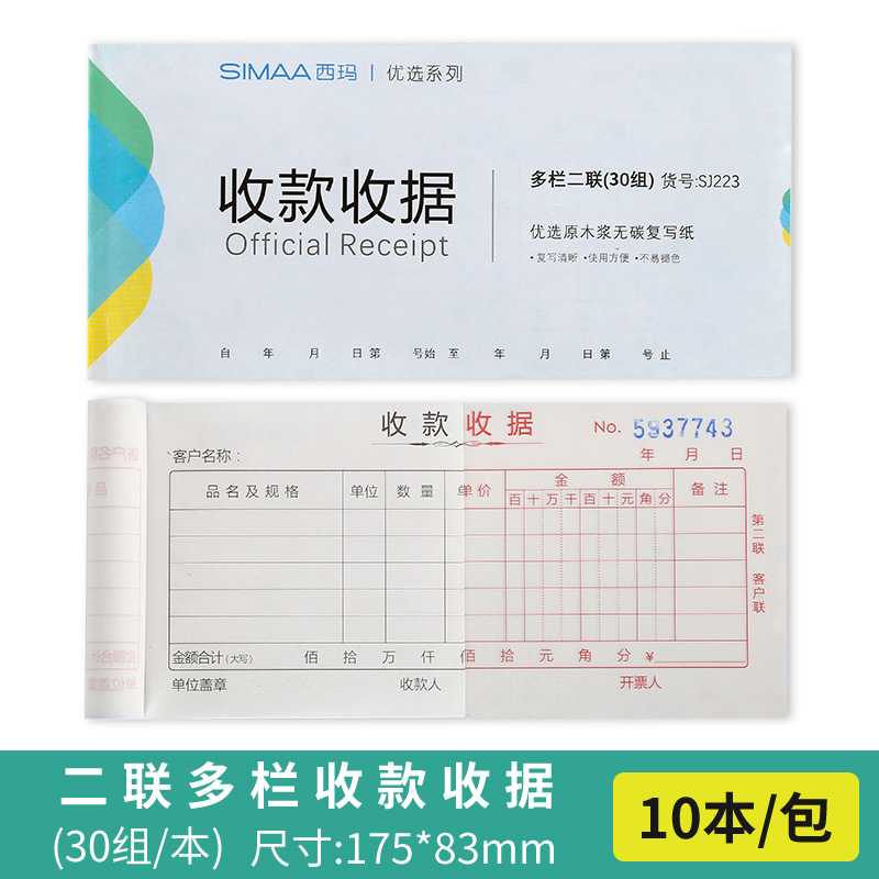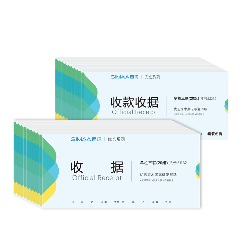 10 двухстраничных платежных квитанций с несколькими столбцами (набор из 20 шт.) SJ222; 20 экземпляров двухраздельных многоколонных платежных квитанций (20 комплектов) SJ222; 10 двухстраничных платежных квитанций с несколькими столбцами (набор из 30 шт.) SJ223; 10 штук двухсекционных квитанций на одну колонку (набор из 20 шт.) SJ122; 20 штук предпочтительной серии, двухсекционные квитанции с одной колонкой (20 комплектов) SJ122; 10 премиальных двухслойных кассовых книг с одной колонкой (30 комплектов) SJ123; 10 выбранных серий трехраздельных многоколонных платежных квитанций (20 комплектов) SJ232; 10 предпочтительных серий, 3-х частных квитанций с одной колонкой (20 комплектов) SJ132