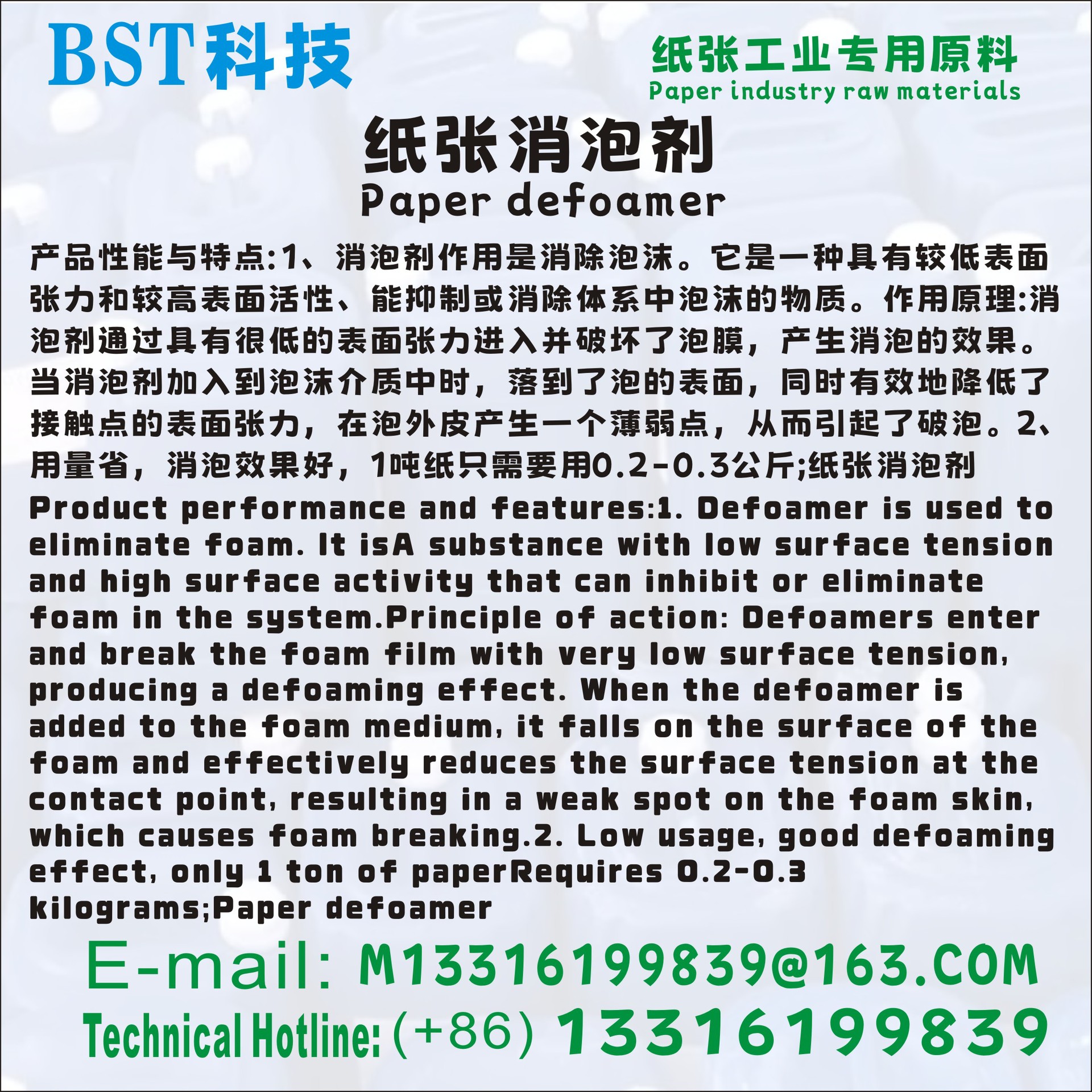 2. Low usage, good defoaming effect, only 1 ton of paper