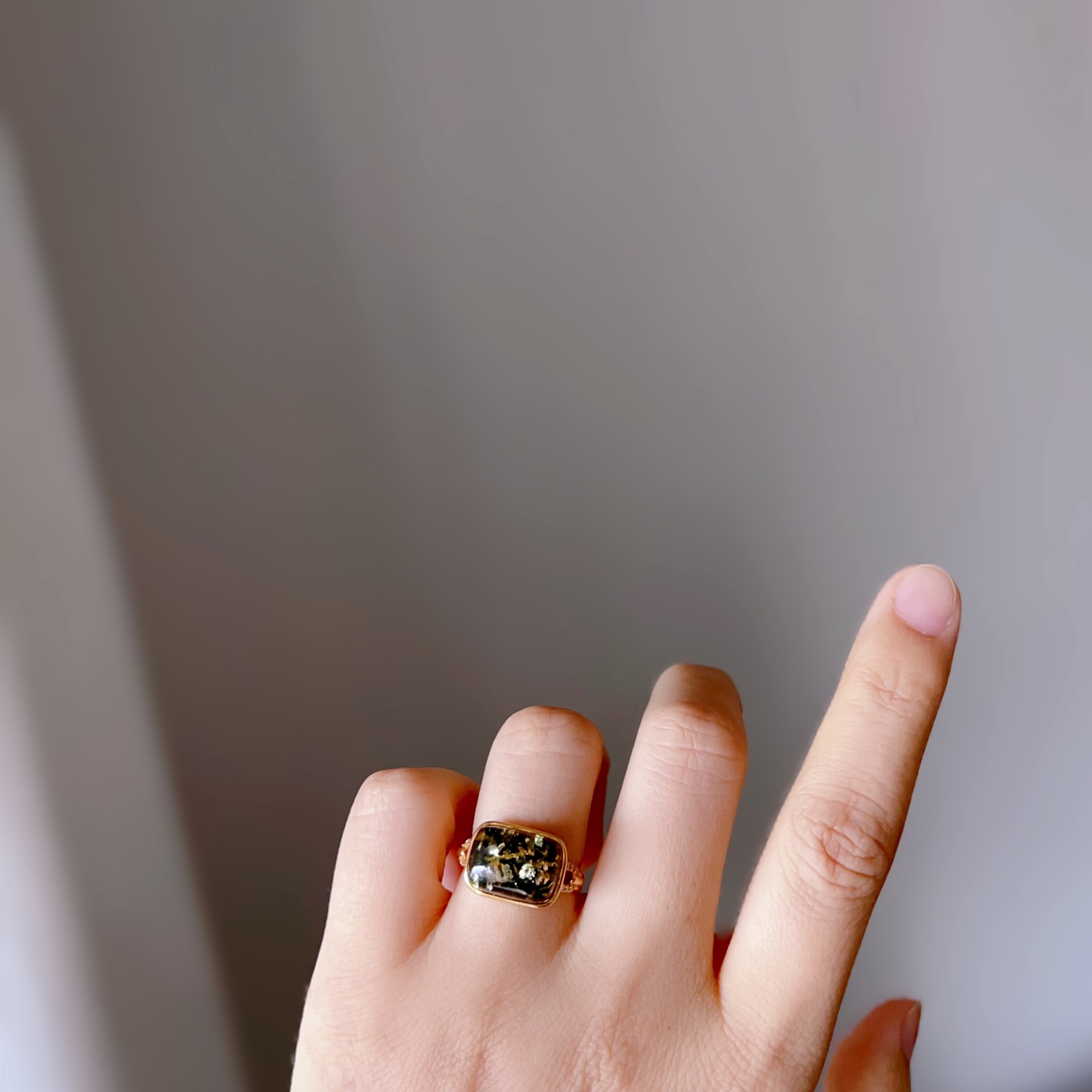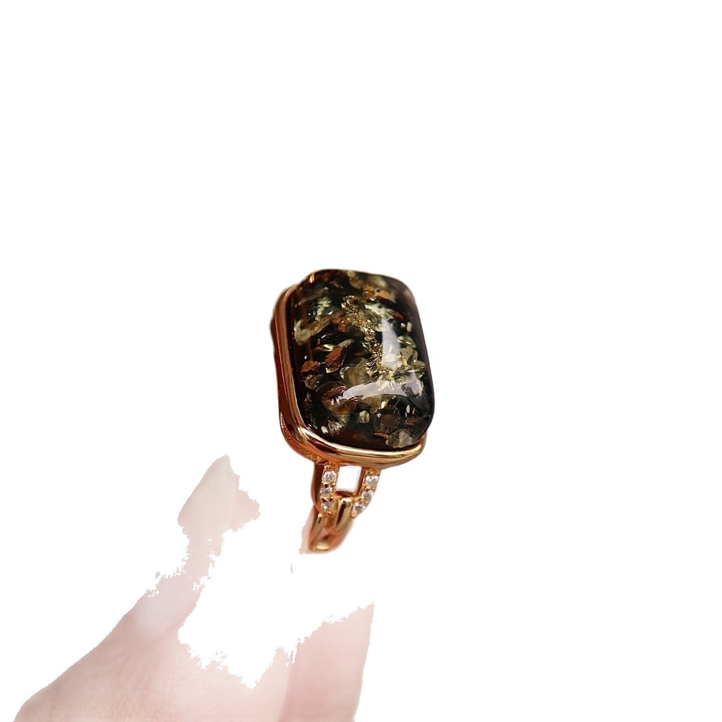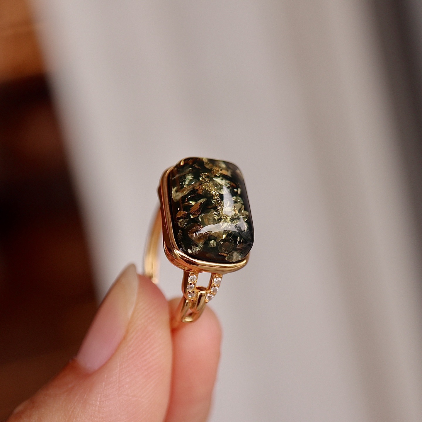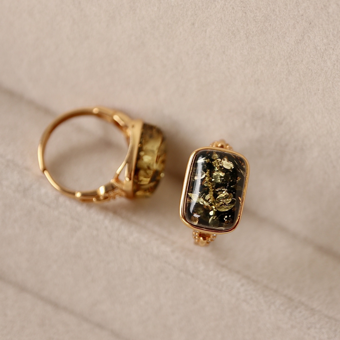 Кольцо из стерлингового серебра с натуральным зеленым цветком и янтарем