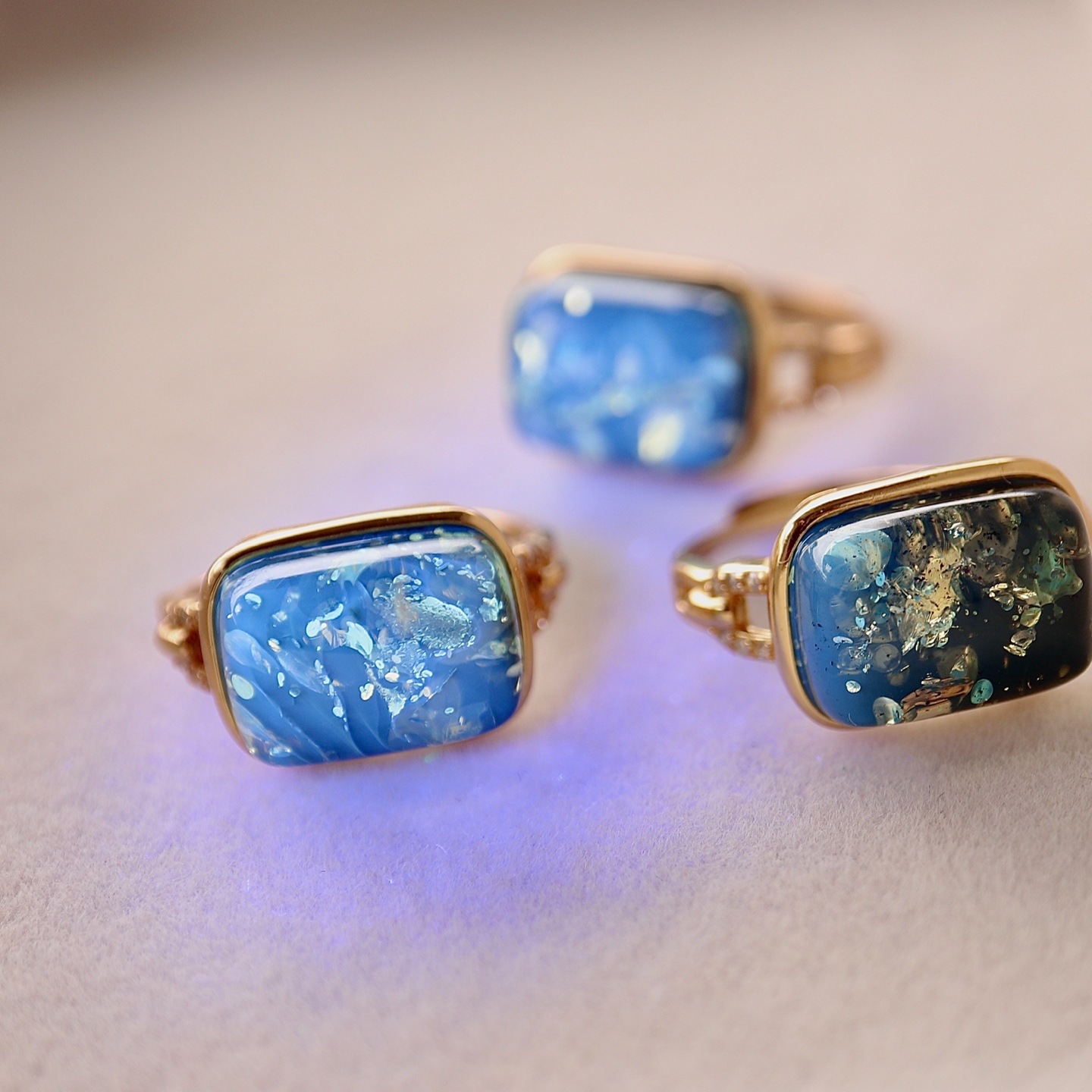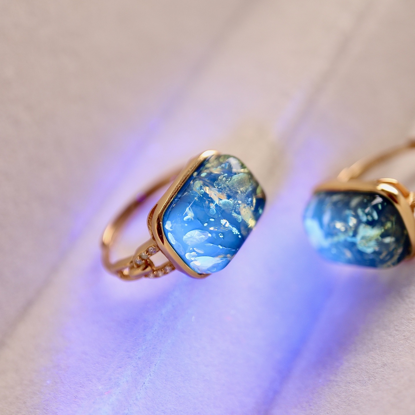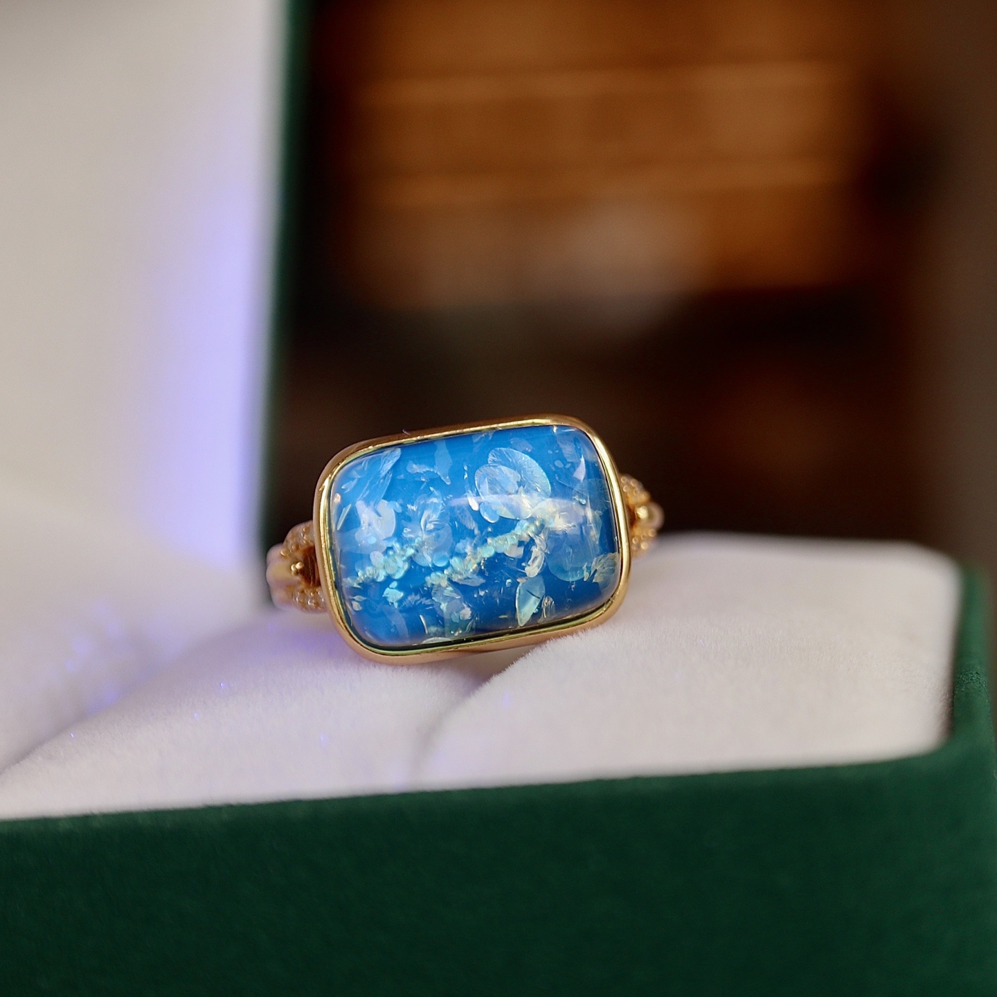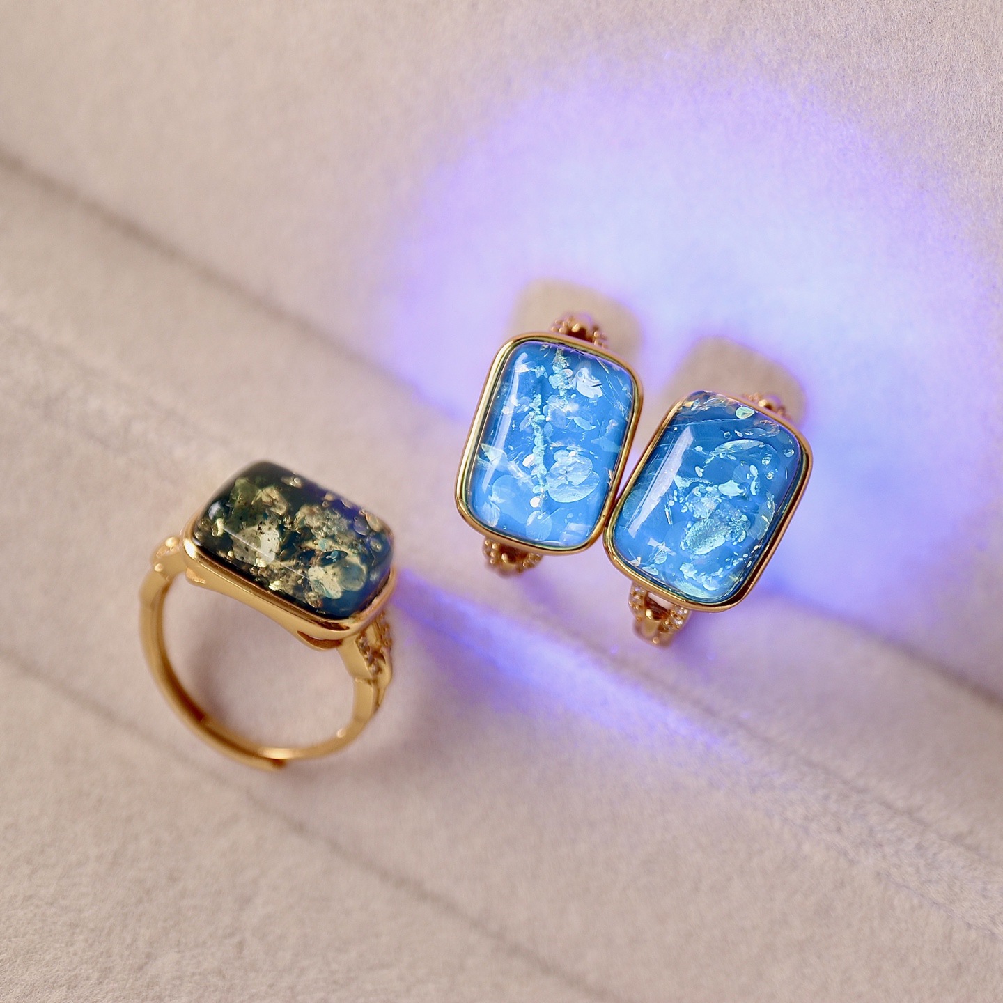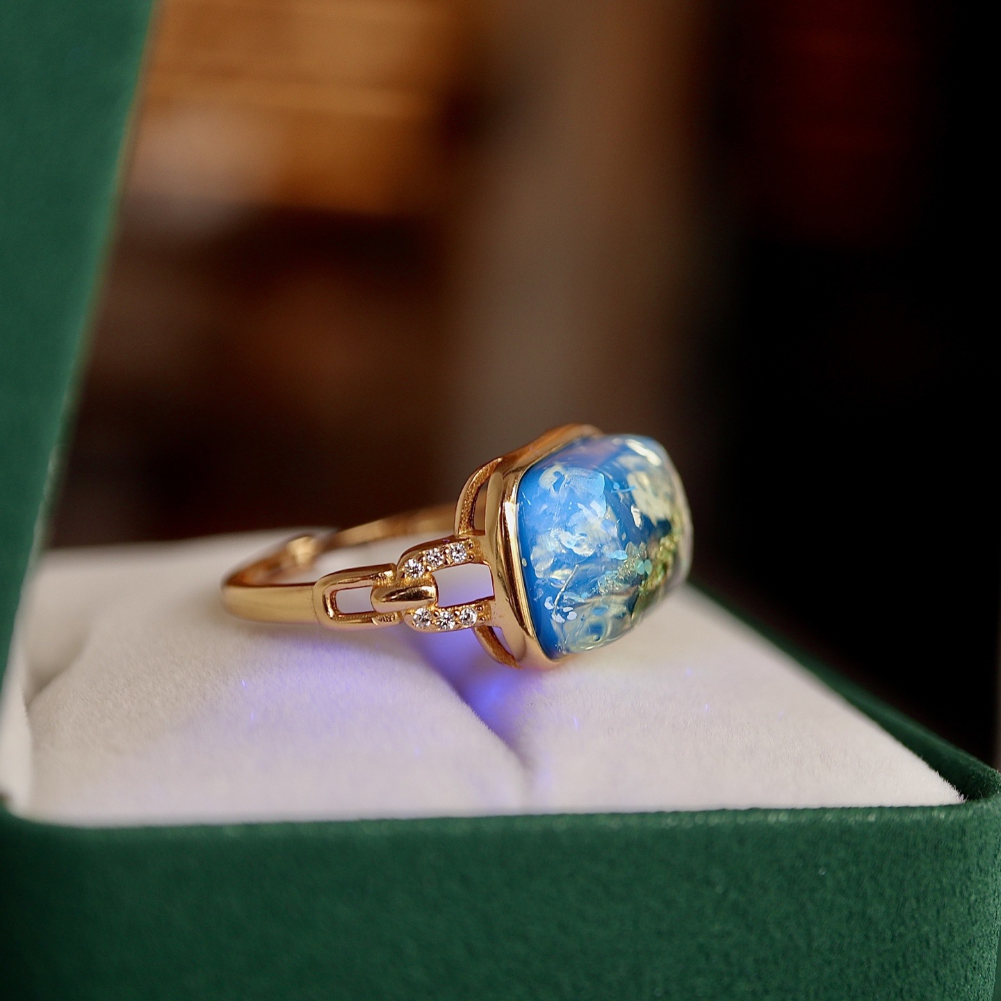 Кольцо из стерлингового серебра с натуральным зеленым цветком и янтарем