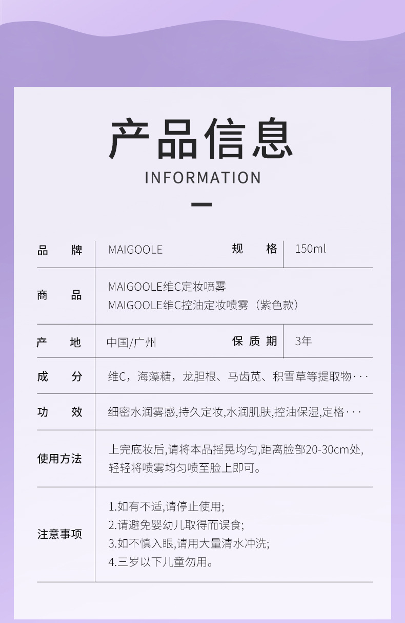 Madeline Спрей для фиксации макияжа с витамином С, 150 мл (фиолетовый стиль)