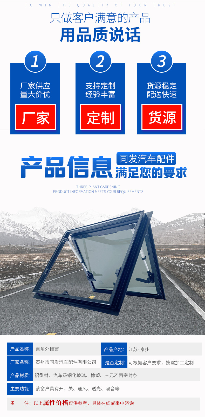 Автомобильное стекло, простое угловое выдвижное окно, профиль из алюминиевого сплава, закаленное стекло, однослойное выдвижное окно