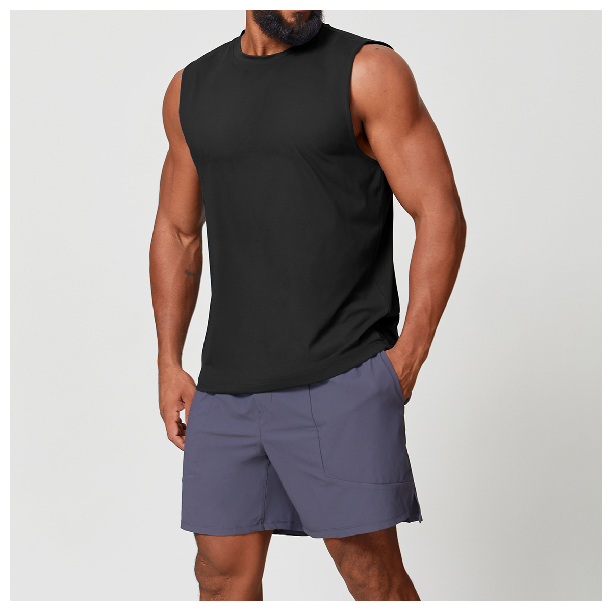 Европейская и американская одежда для йоги и фитнеса, мужские спортивные топы без рукавов, однотонный дышащий влагоотводящий повседневный жилет для бега 1166