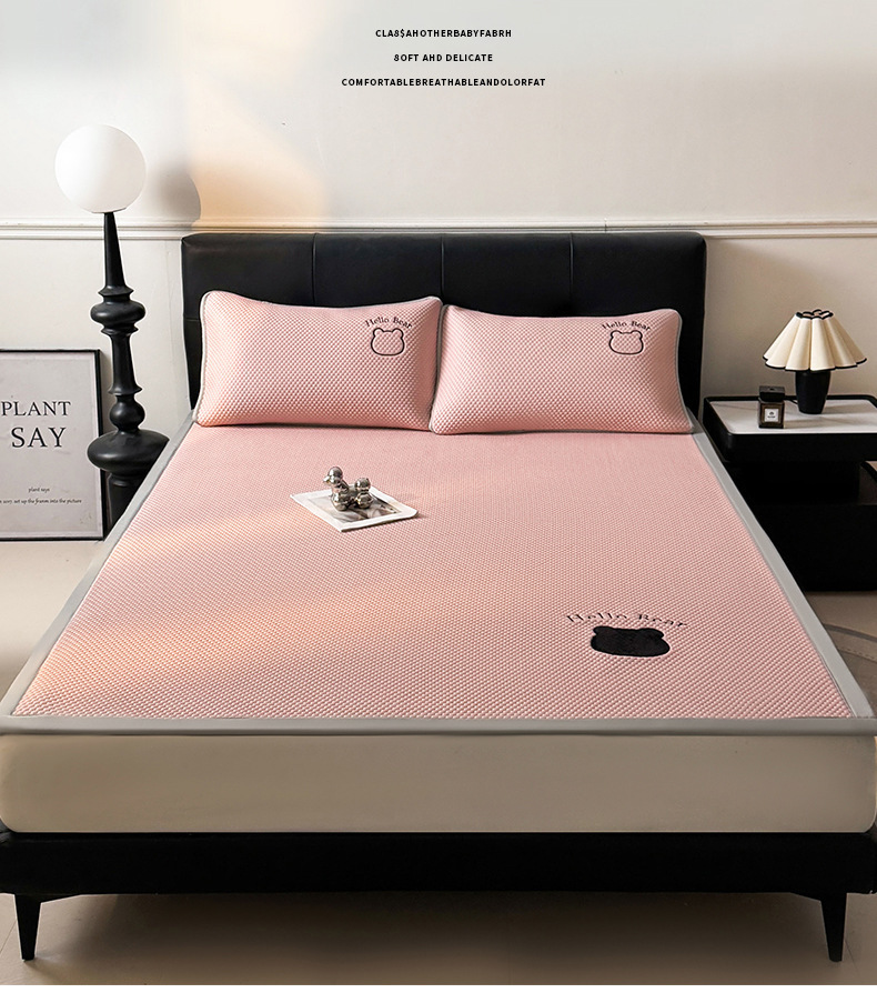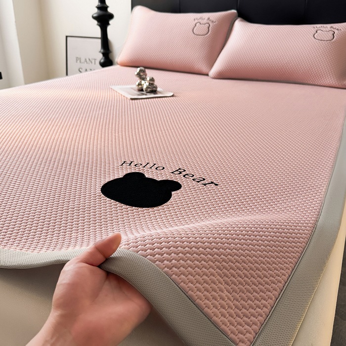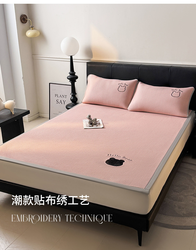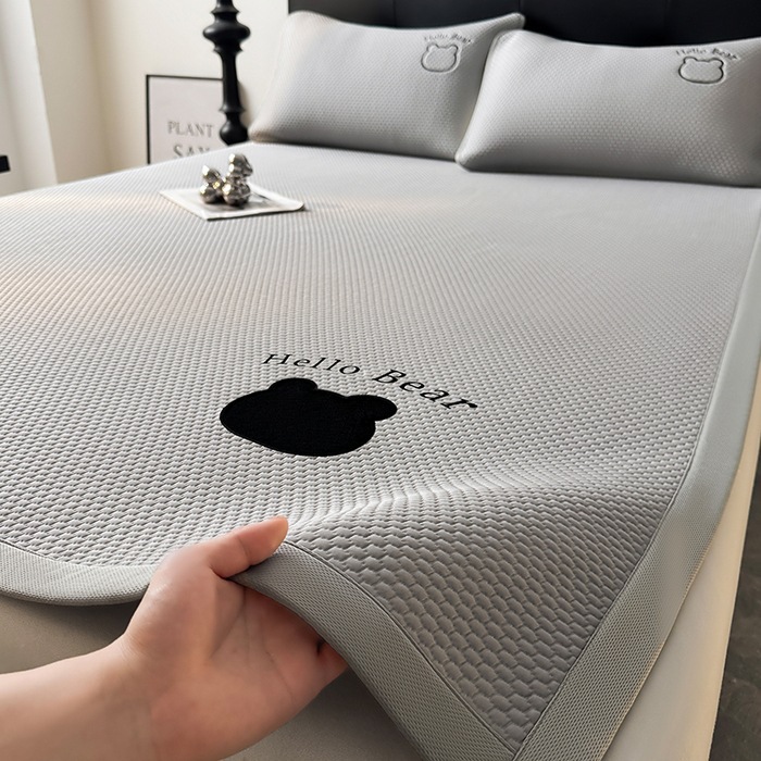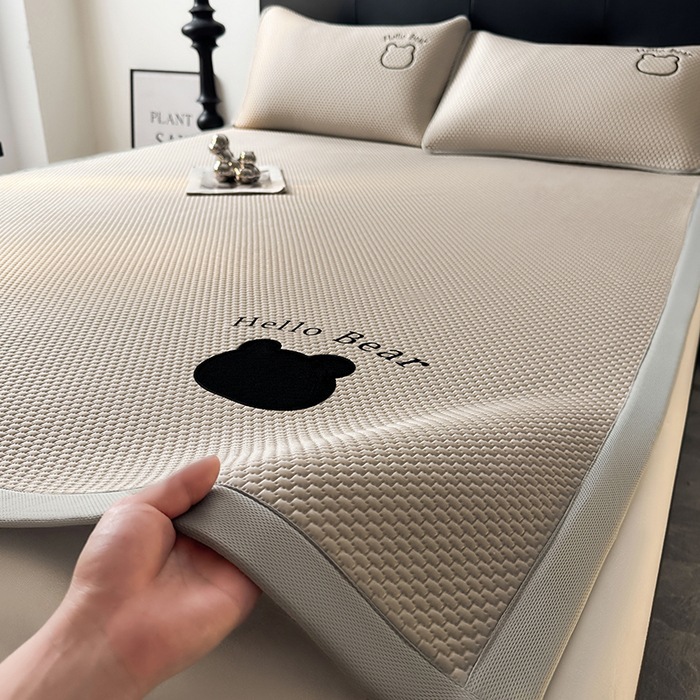 Высококачественный коврик из ледяного шелка, комплект из трех предметов, вышитый крутой коврик из полиэтилена с кондиционером, мягкий коврик для общежития, который можно стирать в машине