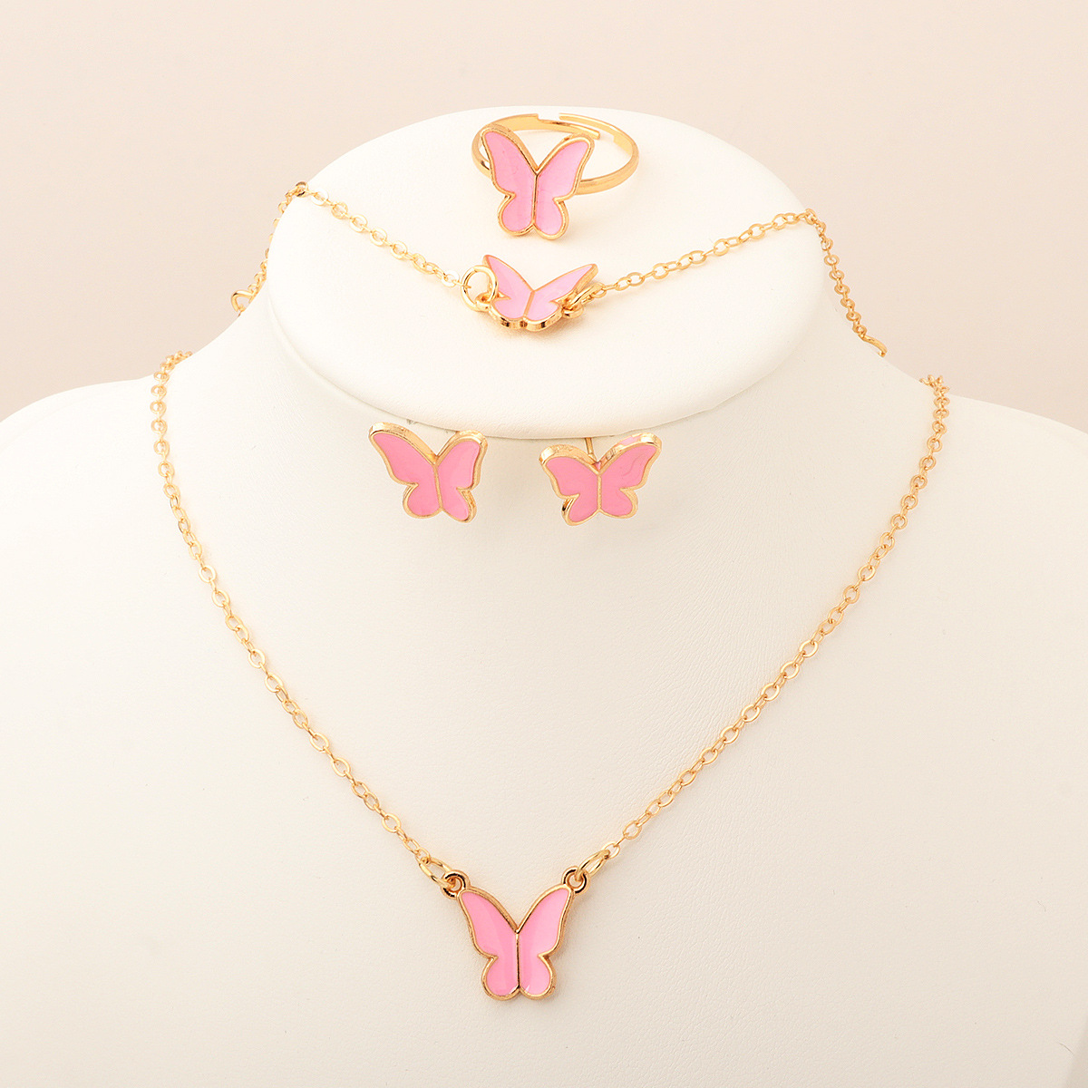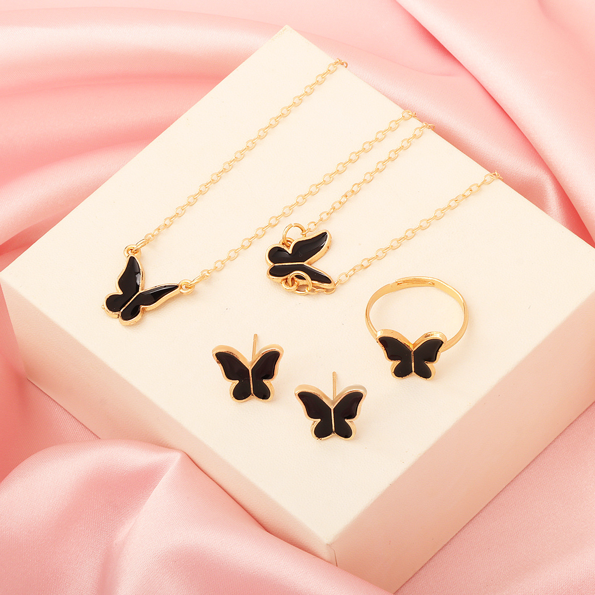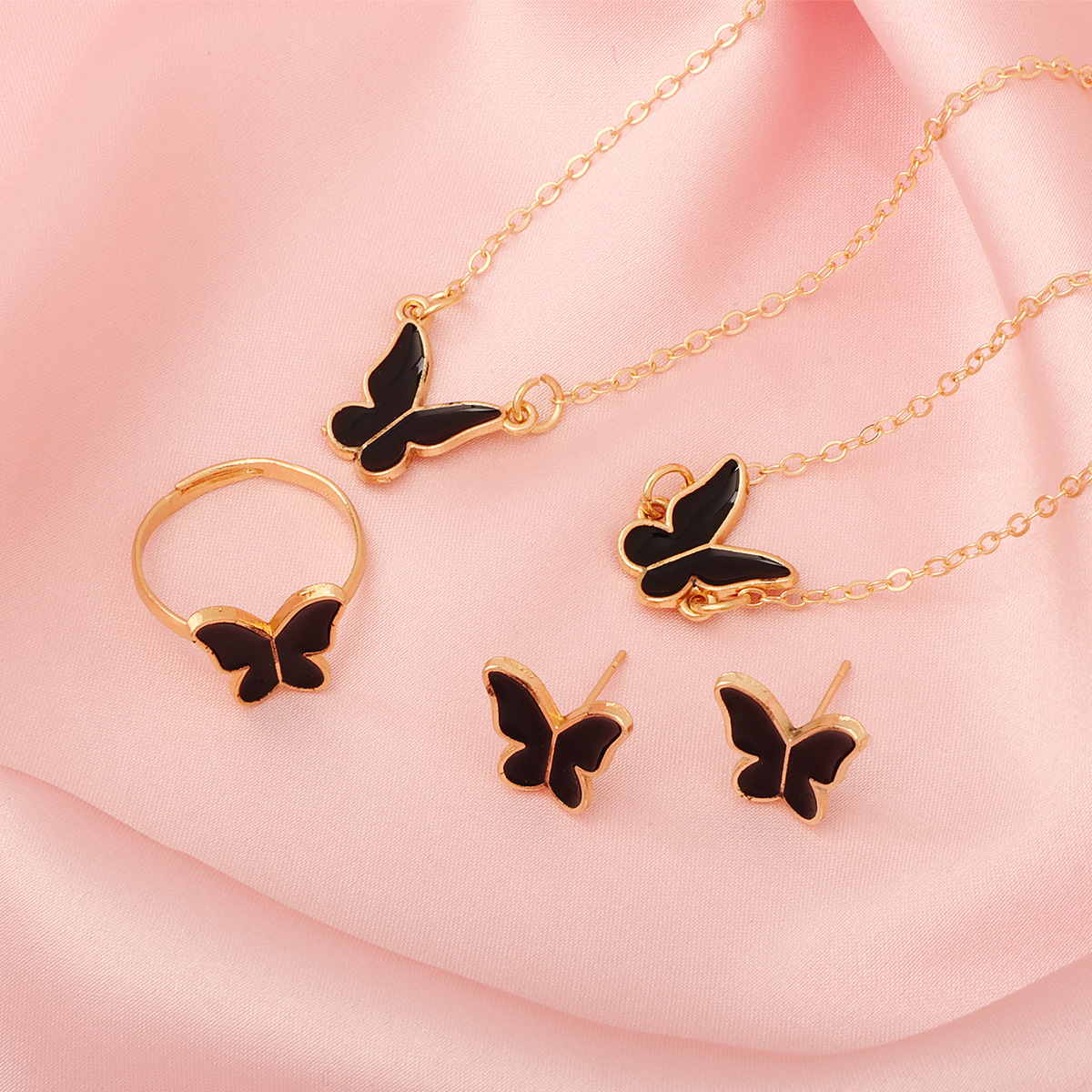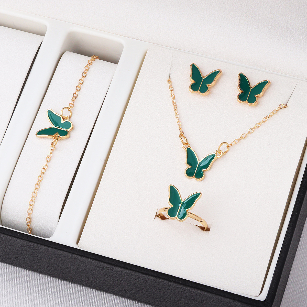 Набор украшений в европейском и американском стиле: колье, серьги и браслет с бабочками, сплав, многоцветная оправа, оптовая продажа.