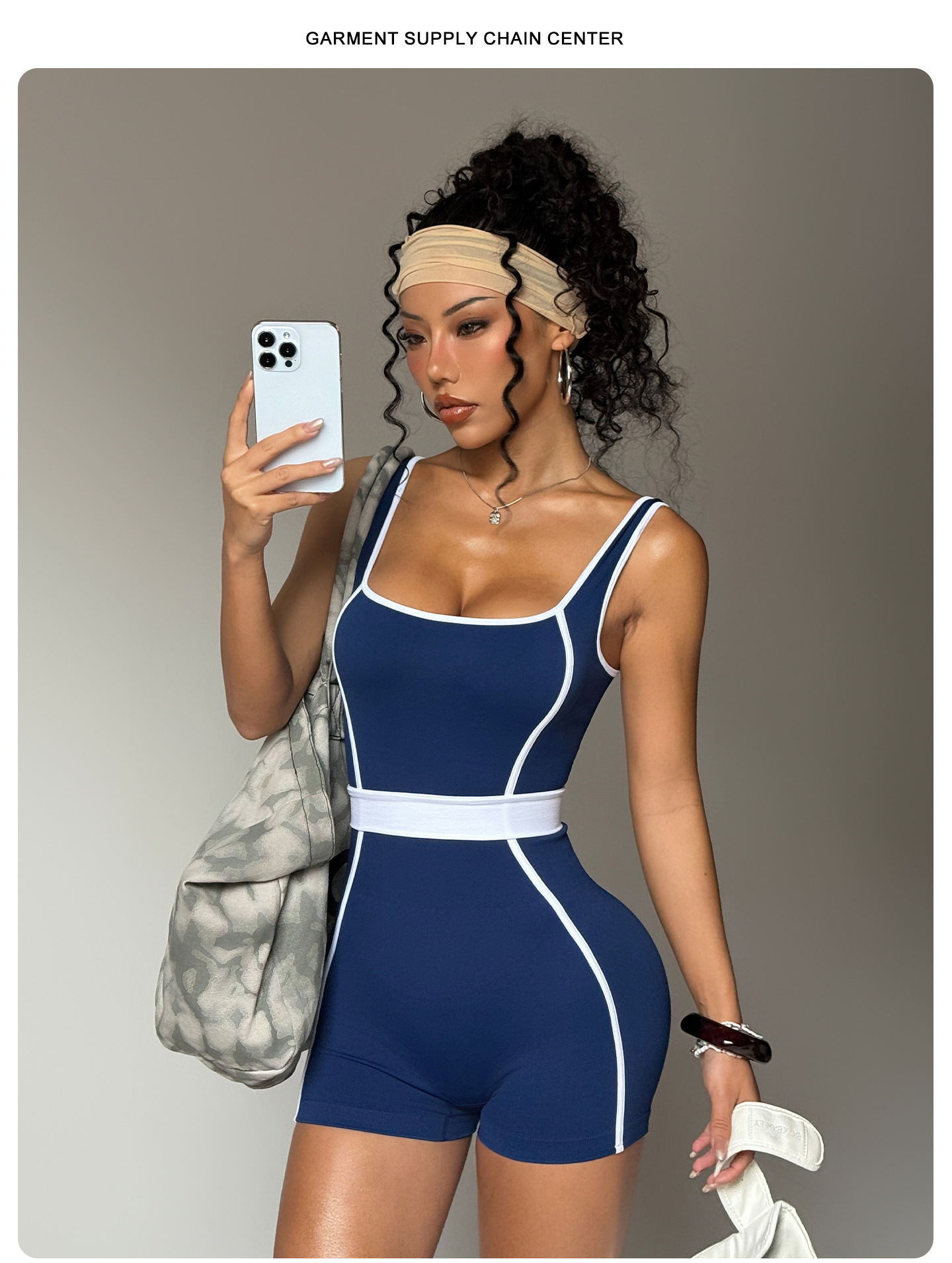 [Готовый запас] Новый бесшовный комбинезон контрастного цвета Xiyin с нагрудником, теннисная одежда, женский спортивный комбинезон для йоги