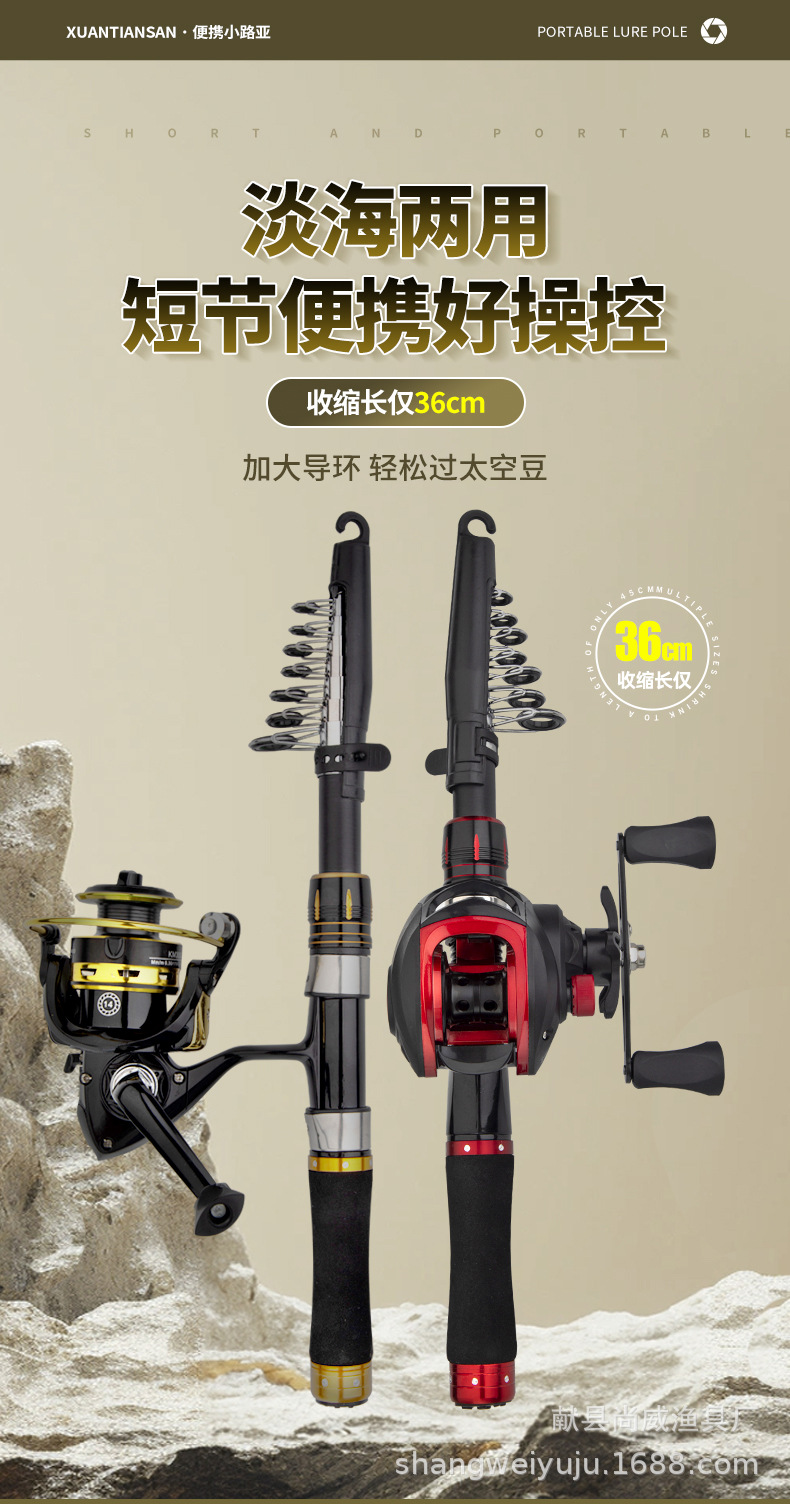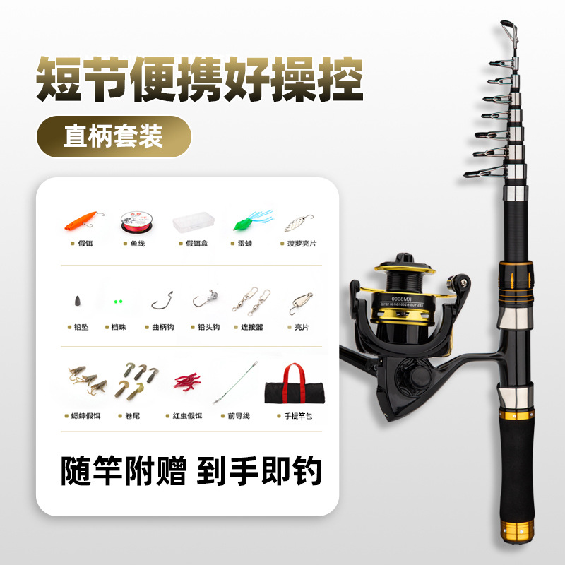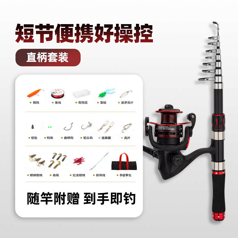 Телескопическая удочка, полный комплект, мини-маленькая морская удочка, портативная маленькая короткая секция, длинная морская удочка, одиночная удочка, набор спиннинговых катушек