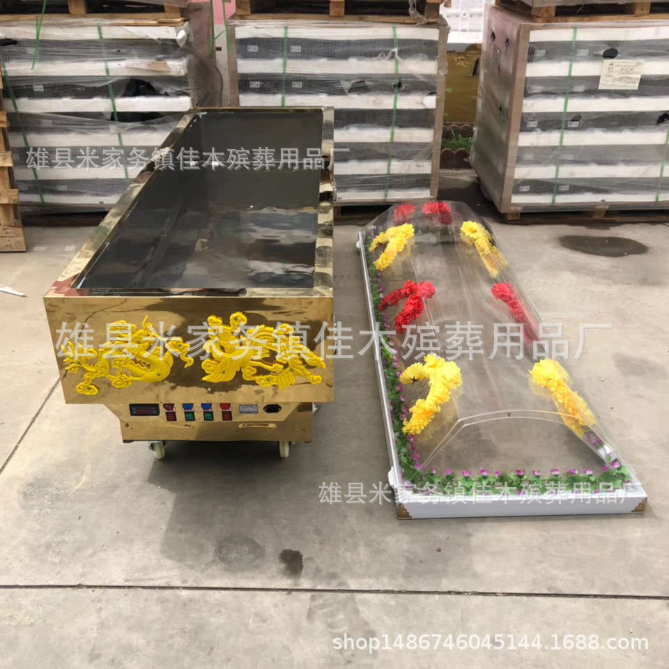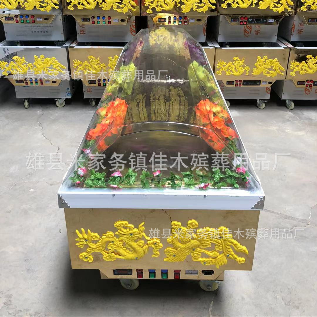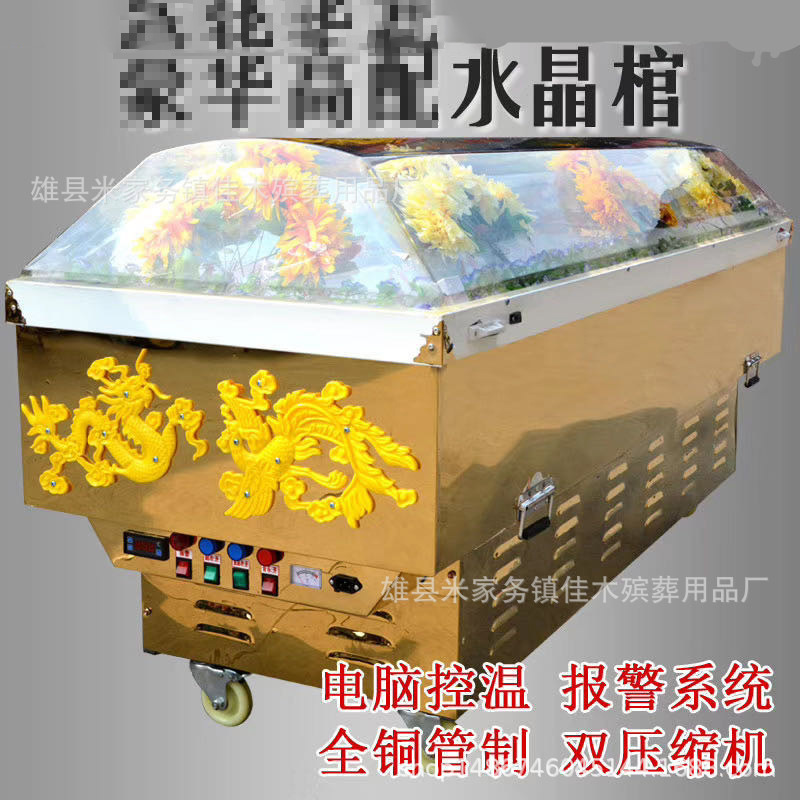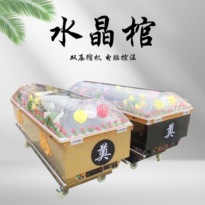 Похоронные принадлежности: хрустальный гроб, ледяной гроб, цельномедный морозильник с двойным холодильным компрессором, титановая пластина, хрустальный гроб, портативная ледяная пластина