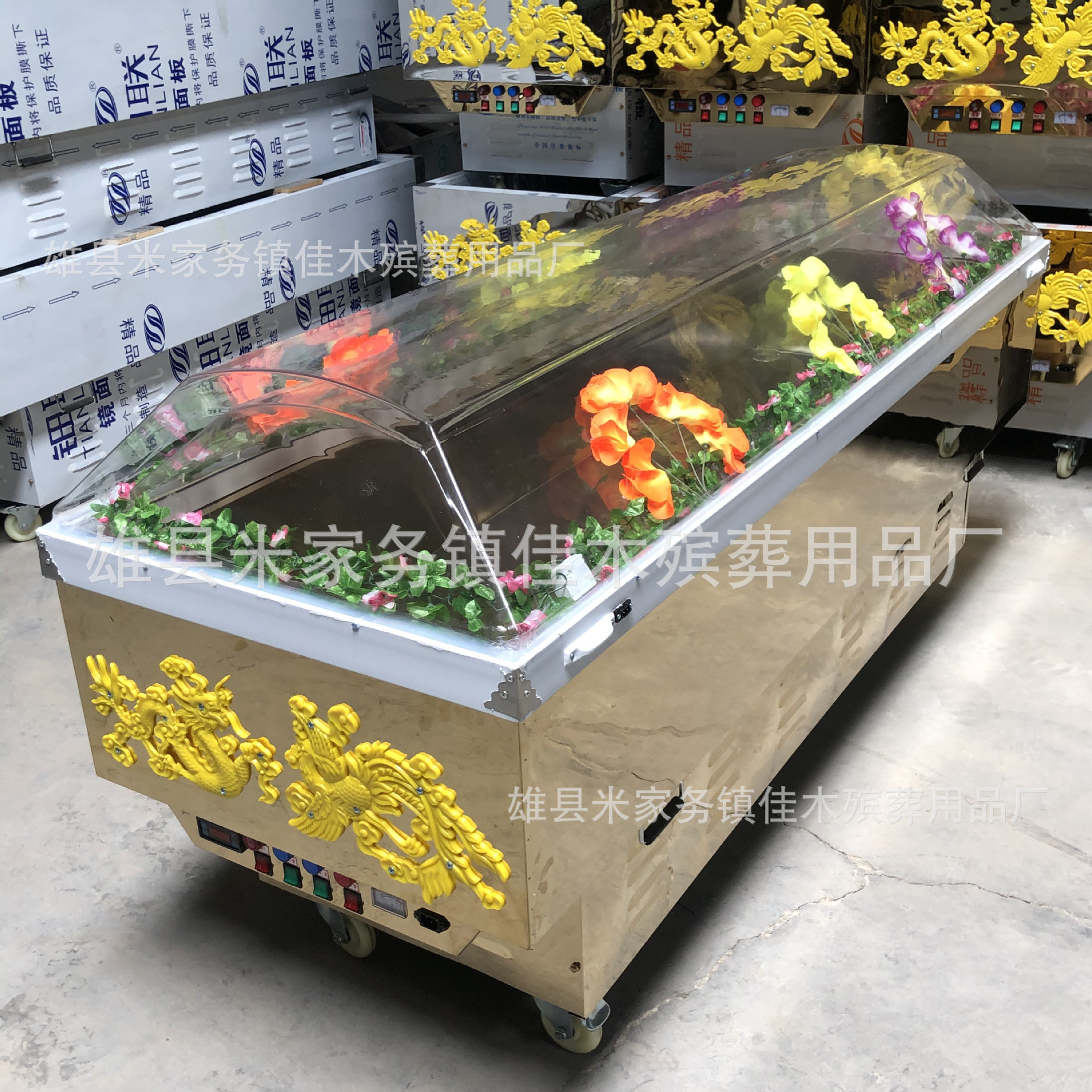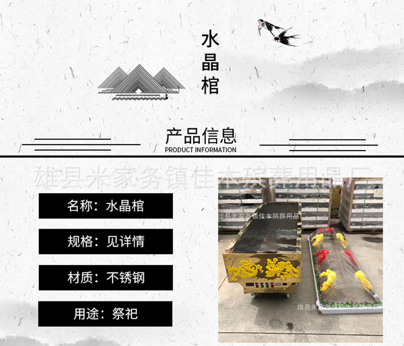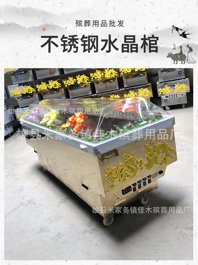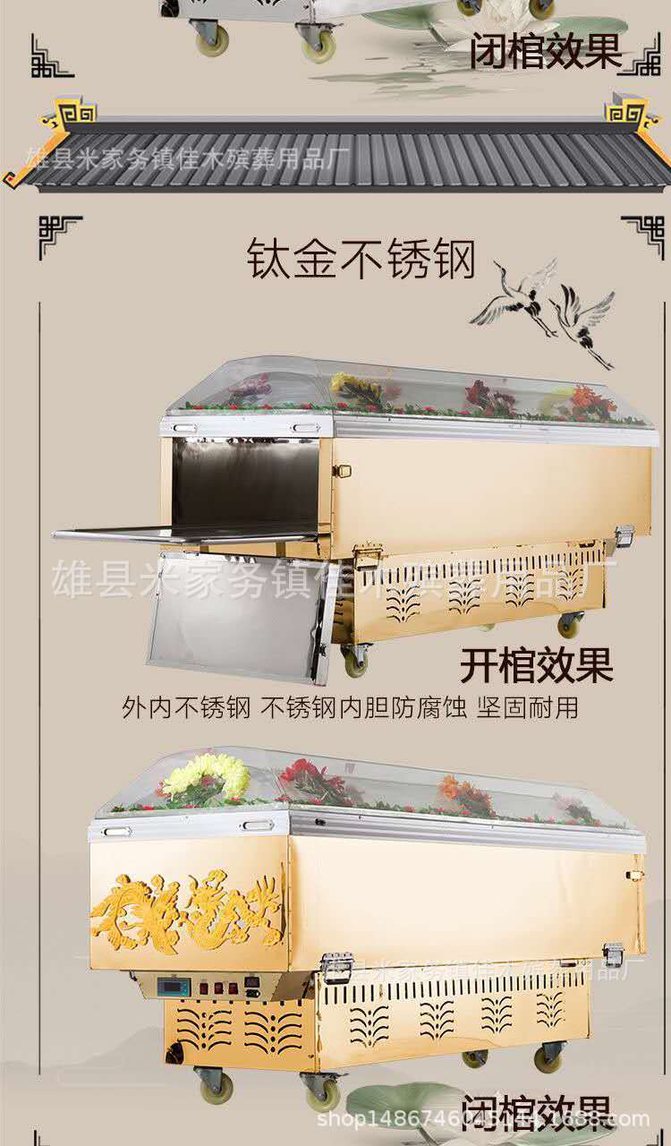Похоронные принадлежности: хрустальный гроб, ледяной гроб, цельномедный морозильник с двойным холодильным компрессором, титановая пластина, хрустальный гроб, портативная ледяная пластина