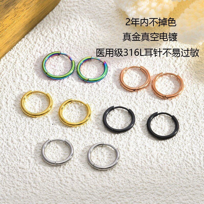 Кросс-бордерные серьги-кольца из нержавеющей стали с вакуумным гальваническим покрытием, универсальные унисекс серьги из титановой стали, простые ювелирные изделия-кольца