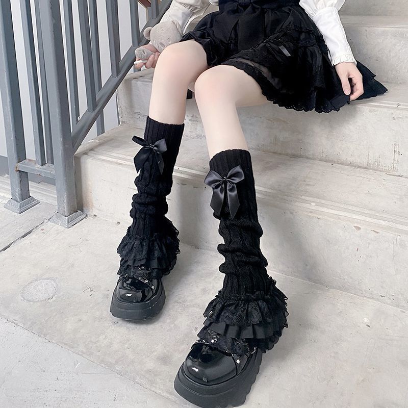 Женские носки до середины икры с кружевной отделкой в стиле Лолиты, милые японские носки с бантом, утягивающие гетры средней длины JK