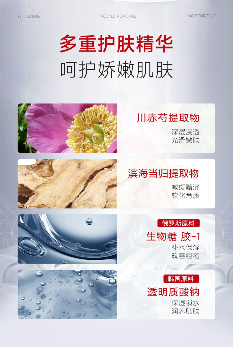 отбеливание; увлажняющий; Гидратация; Улучшить тон кожи; Удалить веснушки