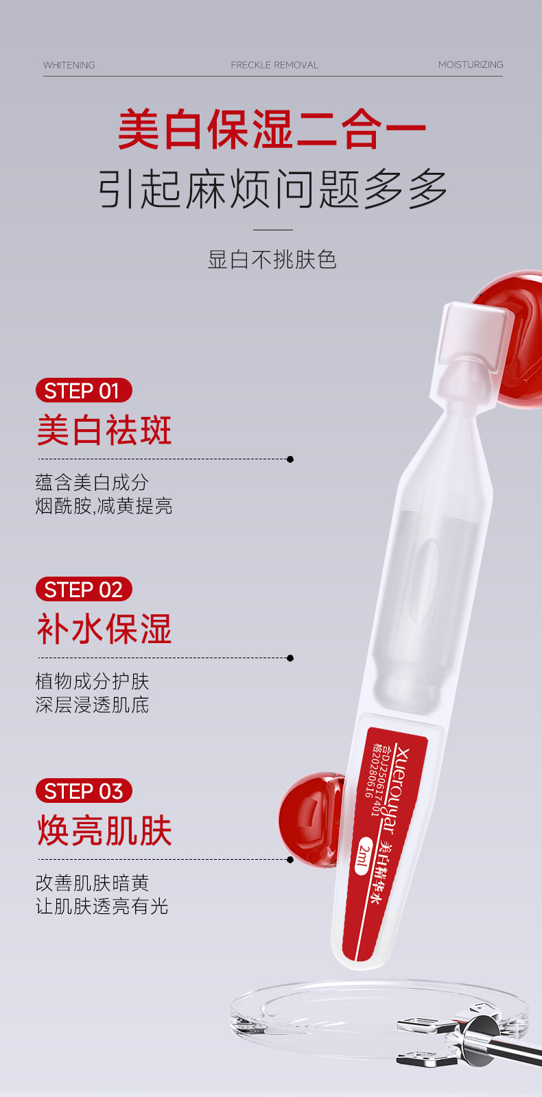 xuerouyar Отбеливающая и противовеснушечная эссенция Вода (одноразовая) 2 мл*10 бутылочек