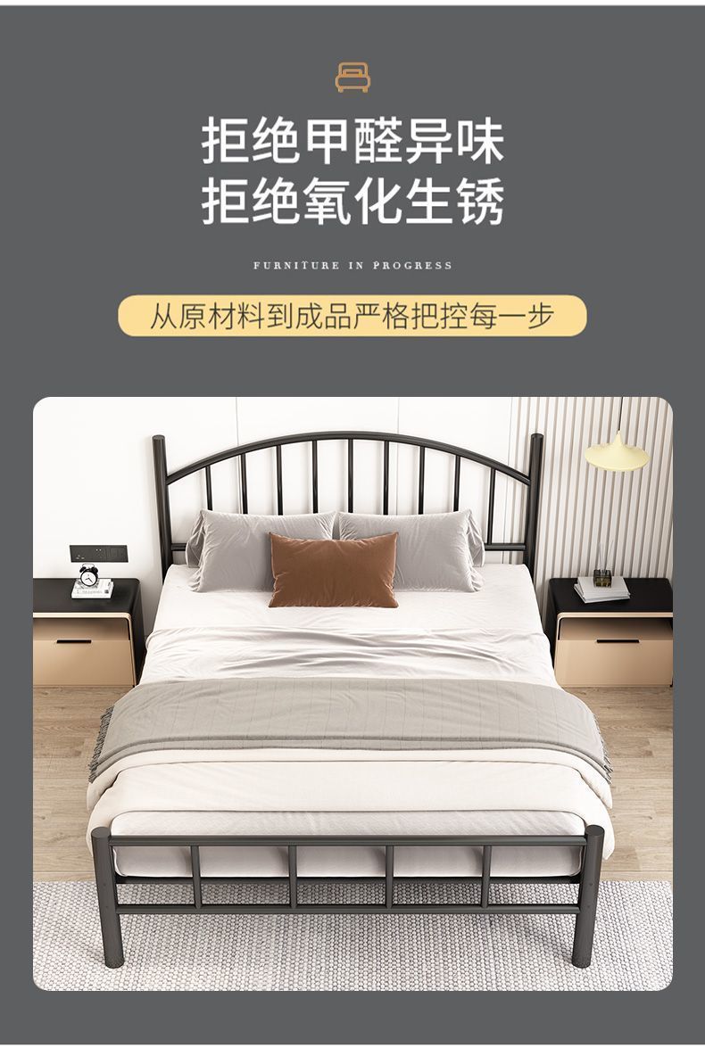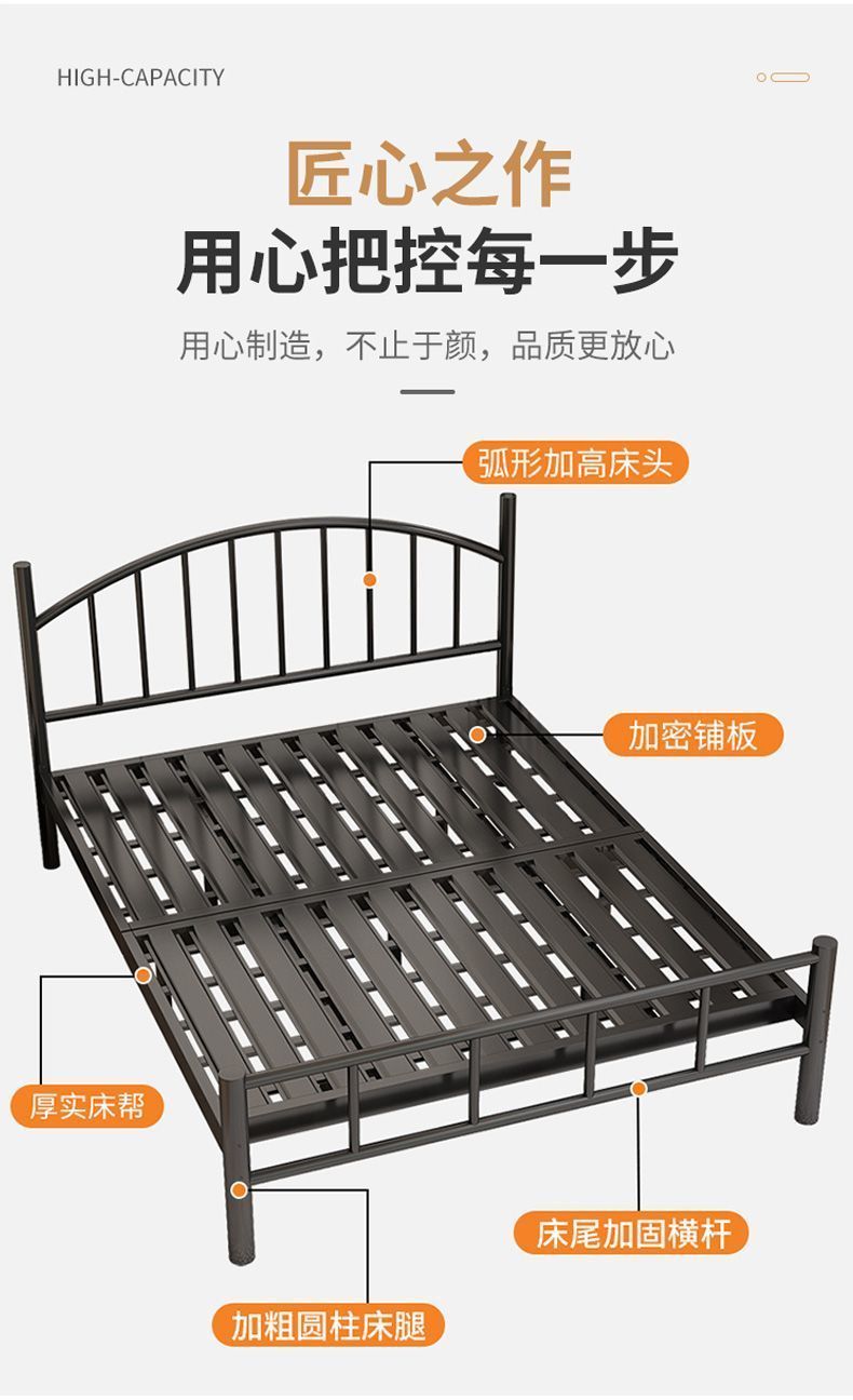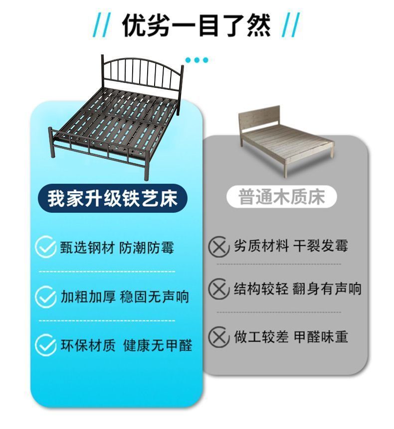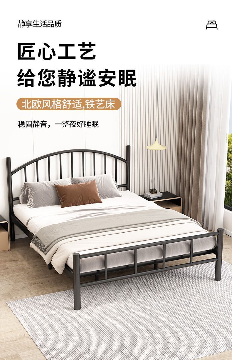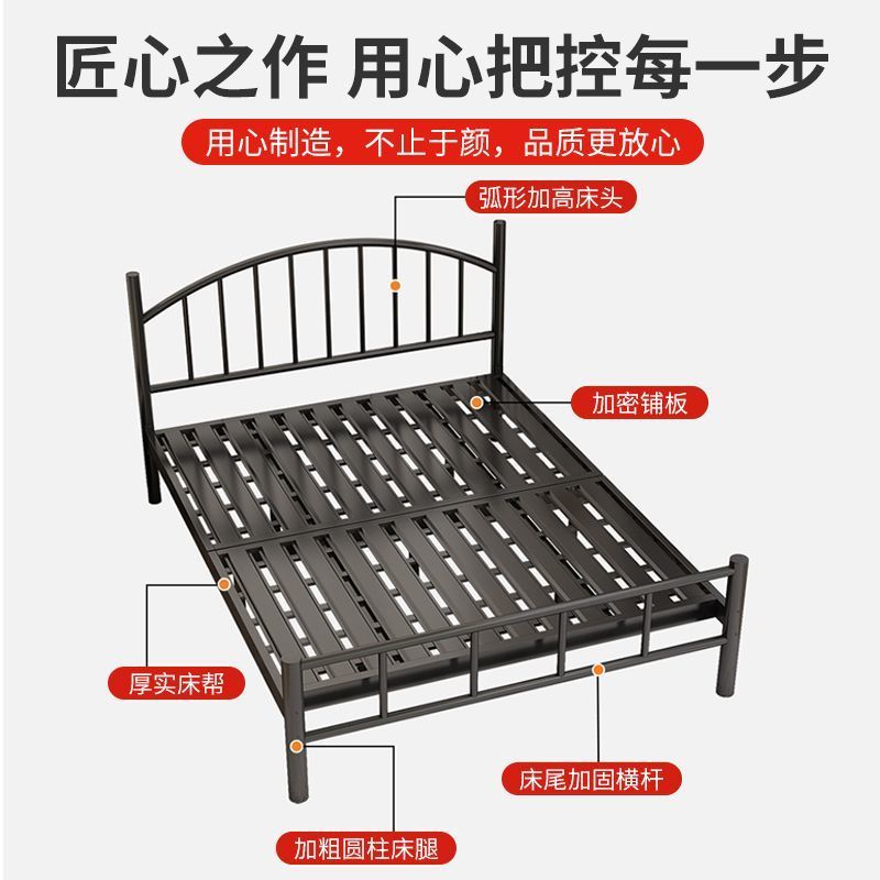 Кованая кровать, двуспальная кровать, железный каркас для домашнего использования, утолщенная версия 1.8m года, каркас кровати 1,5 м, односпальная кровать, простая комната для аренды
