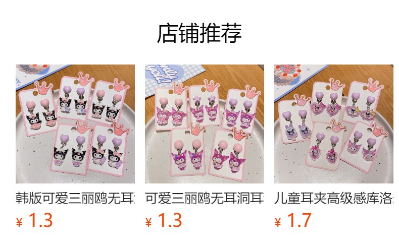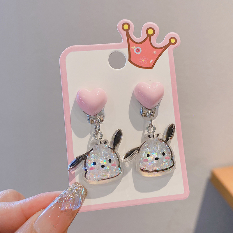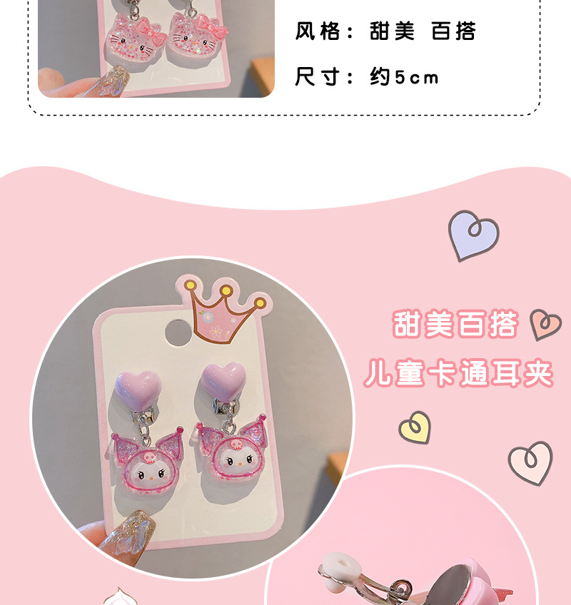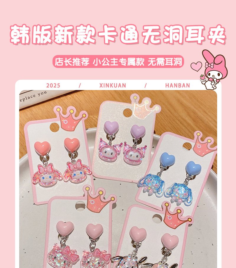 Милые детские серьги-клипсы с мультяшными персонажами, новые, сладкие, принцессы, разноцветные, Sanrio