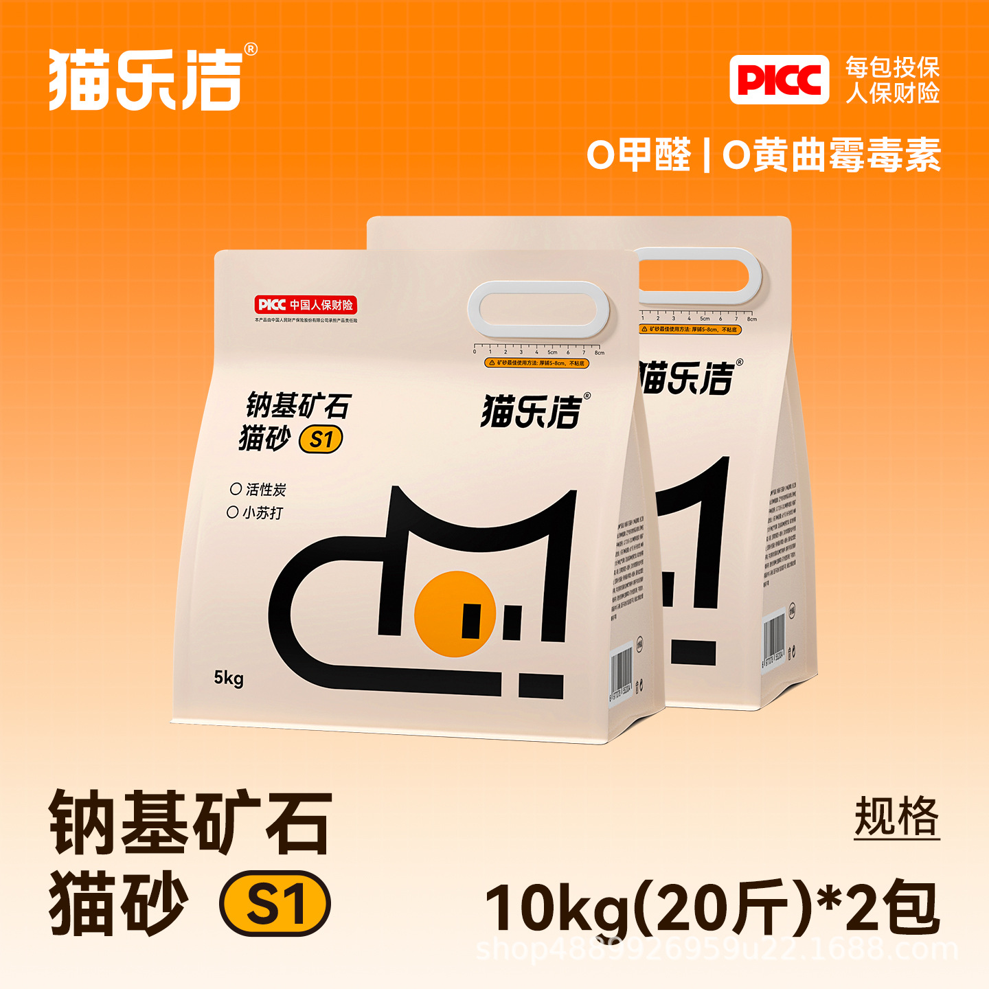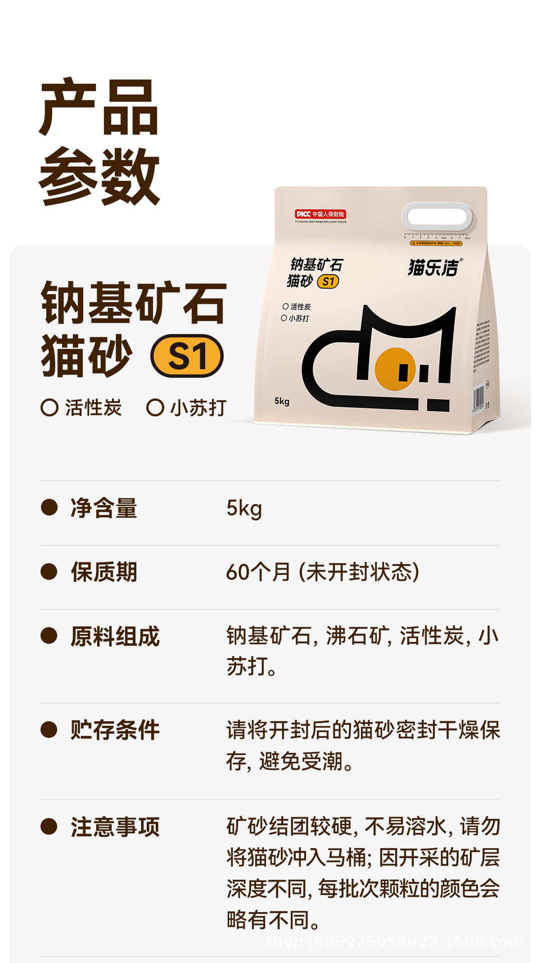 Mao Lejie S1 натуральный минеральный наполнитель для кошачьего туалета на основе натрия, почти без пыли, 5kg упаковка, 5кг, активированный уголь, пищевая сода