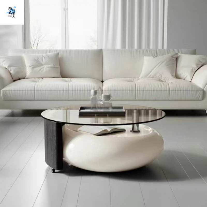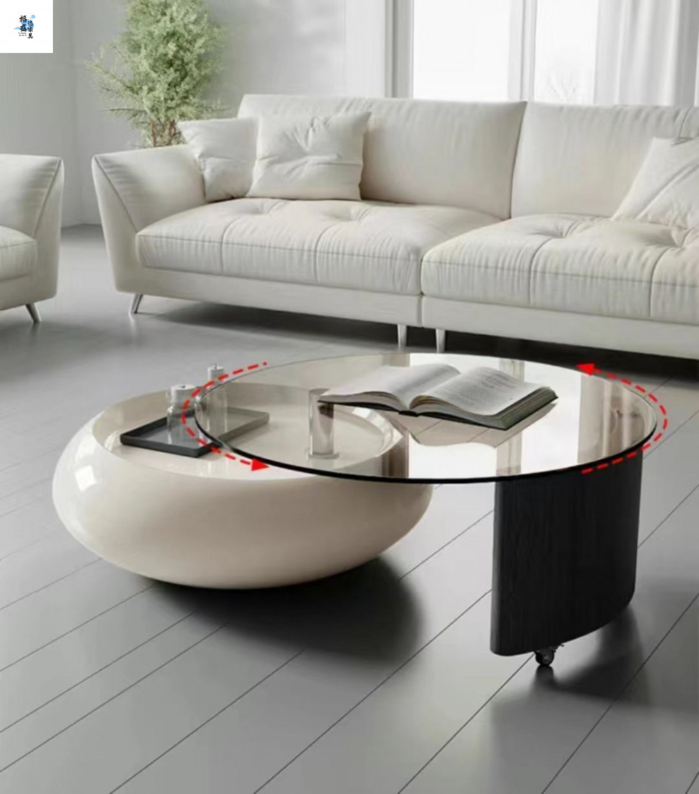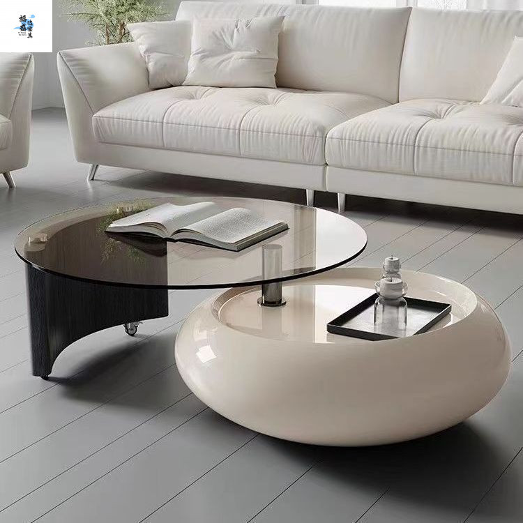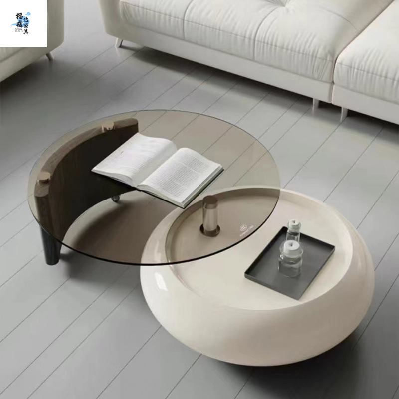Вращающийся журнальный столик в кремовом стиле, дизайнерский светильник для гостиной в маленькой квартире, роскошный высококачественный круглый журнальный столик из закаленного стекла, комбинация