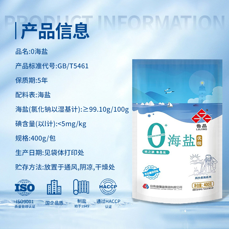 [Официальная аутентичная] Lujing Premium съедобная соль, морская соль, приправа 400 г, без йода, нулевые добавки, без средства против торцовки